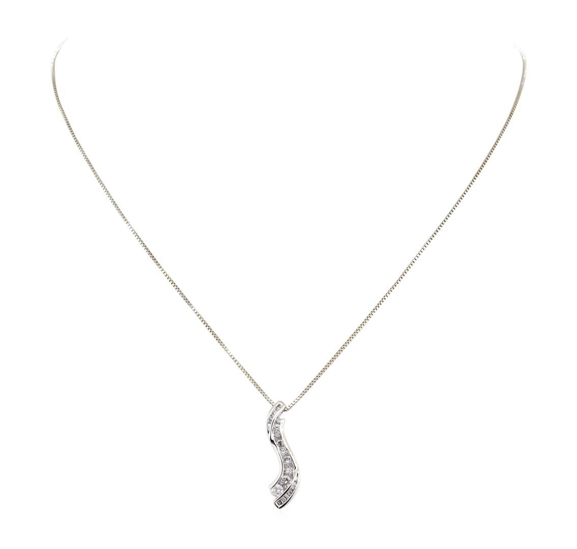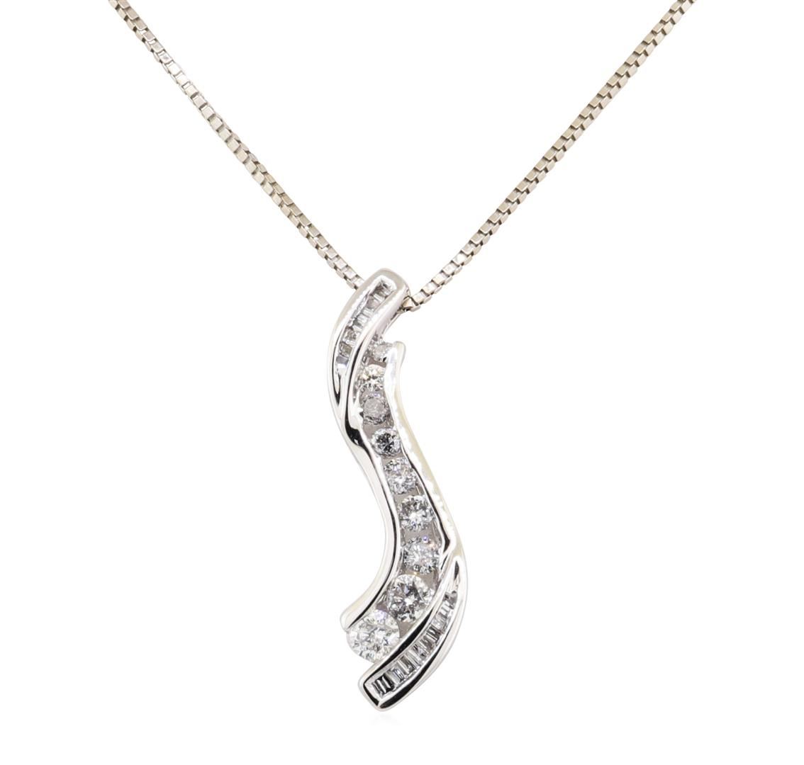 One diamond journey of life pendant with an attached 16 inch, 1 mm box link chain featuring: 10KT white gold weighing 3.2 grams containing diamonds weighing 0.50ctw.