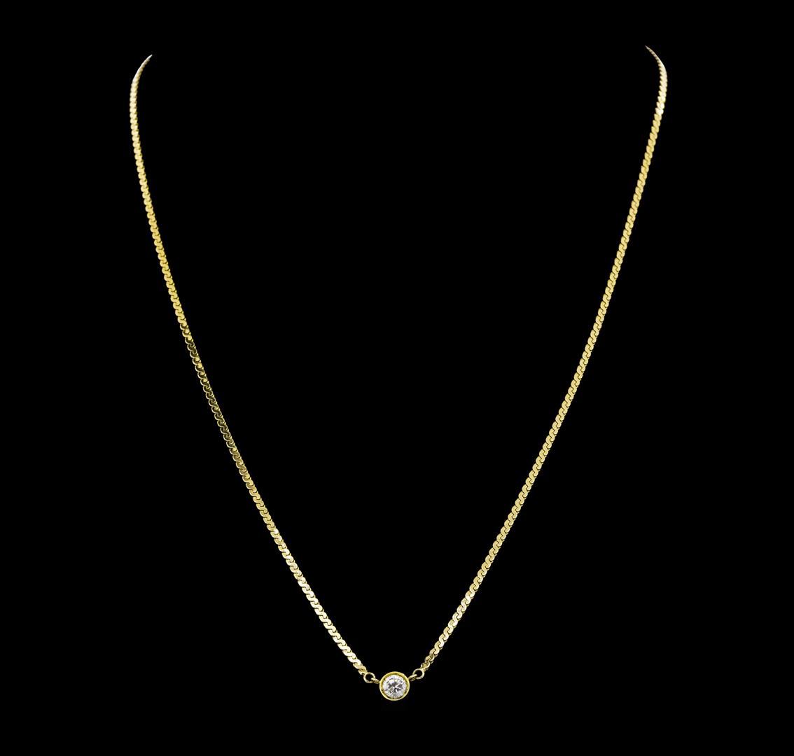 One lady's necklace featuring: 14KT yellow gold weighing 6.2 grams containing one diamond weighing approximately 0.50ct. The necklace measures approximately nineteen inches in length.