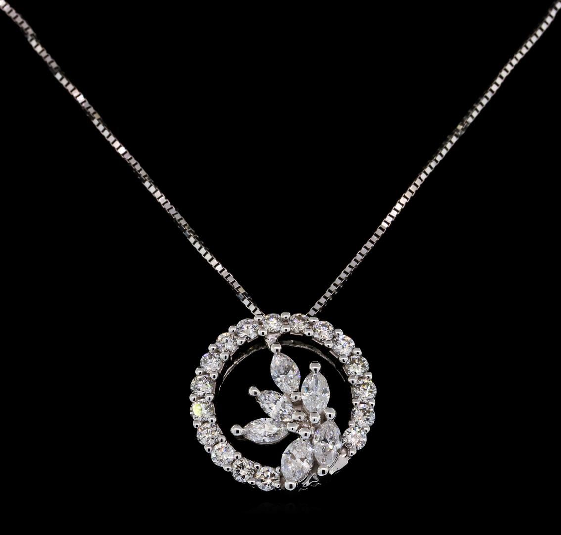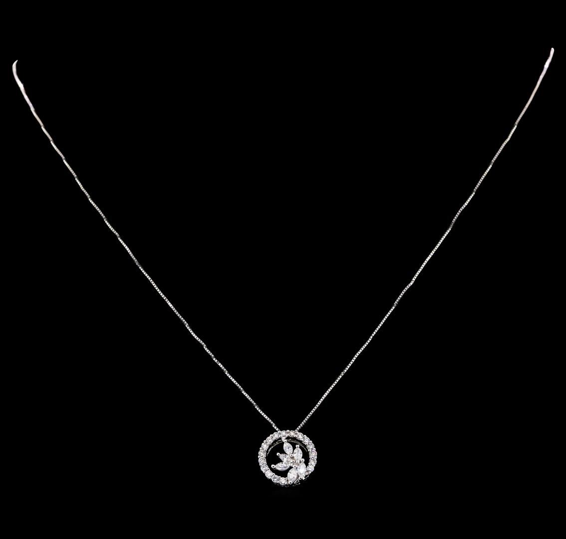 One pendant with chain featuring: 14KT white gold weighing 2.6 grams containing diamonds weighing 0.50ctw.