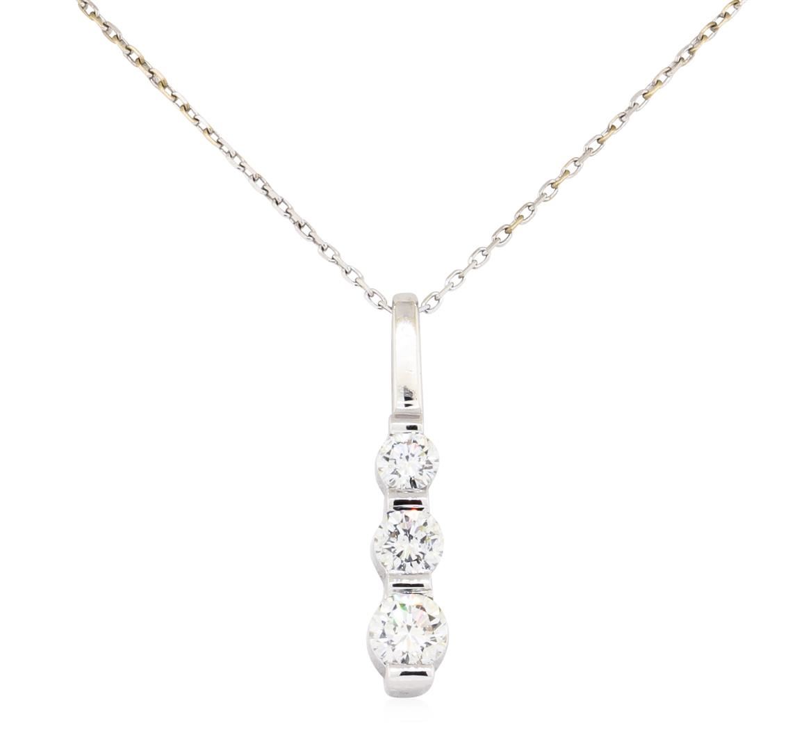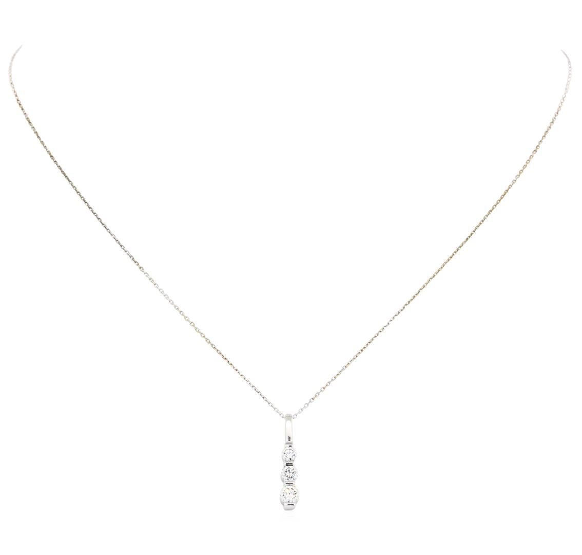 One lady's pendant with an attached adjustible chain that measures from fourteen to sixteen inches in length featuring: 14KT white gold weighing 2.2 grams containing diamonds weighing 0.50ctw.
