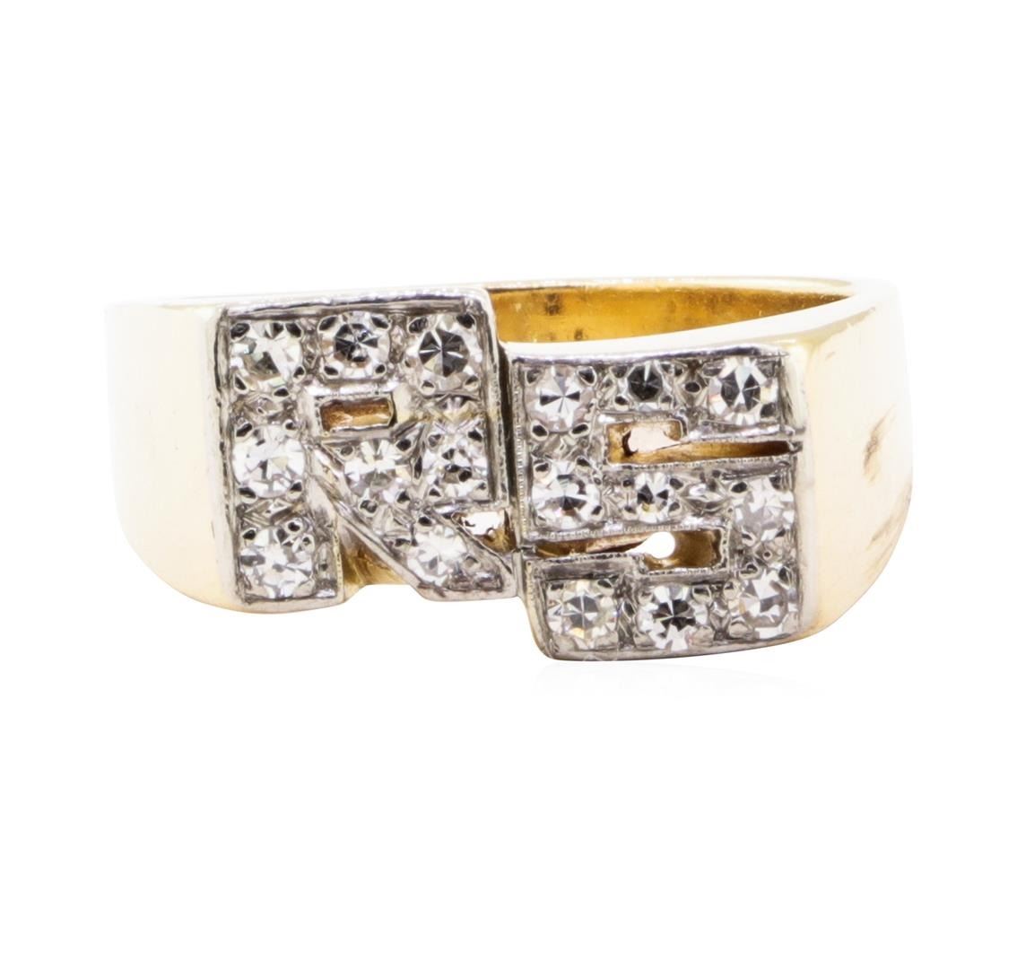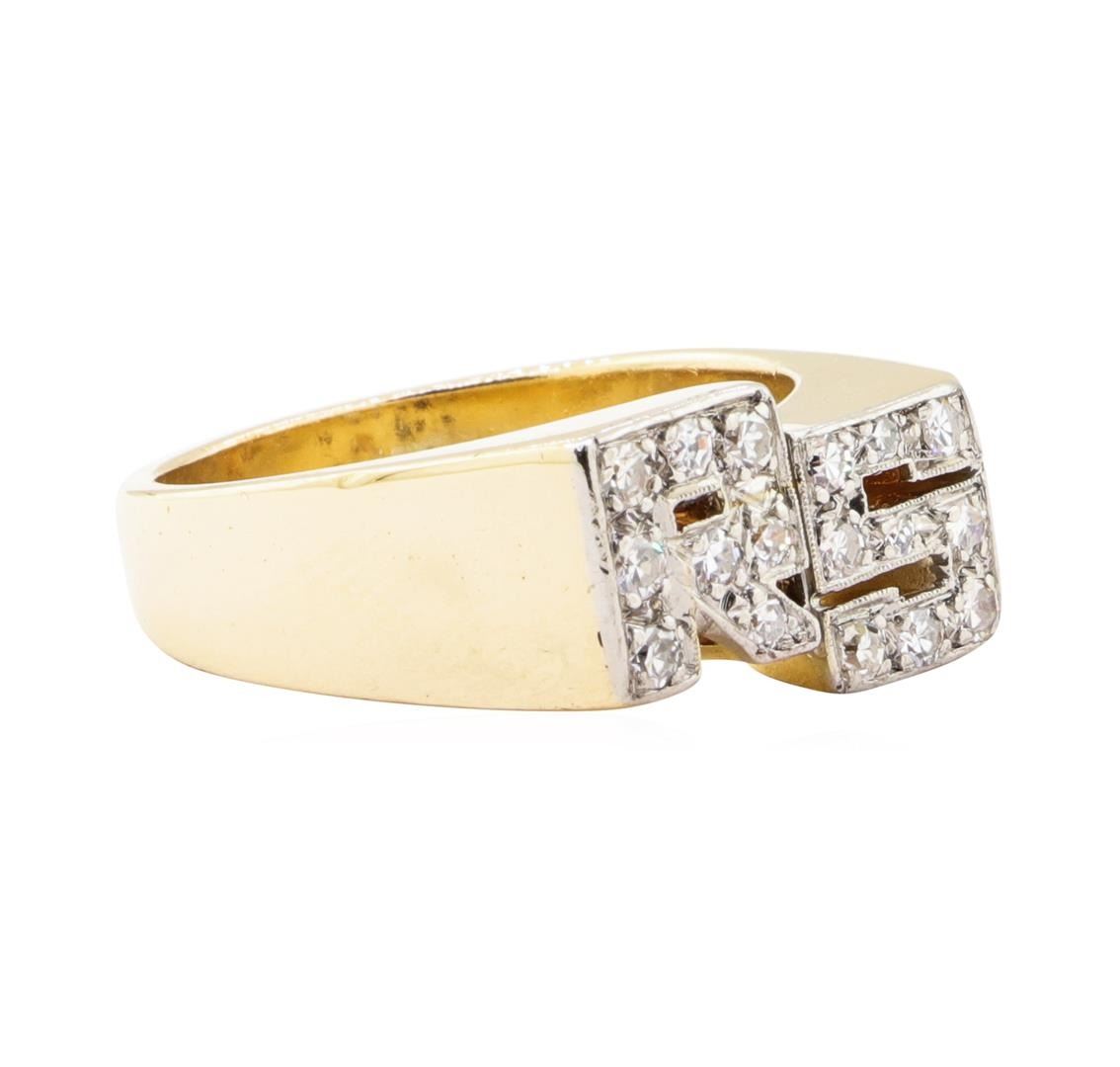 One "RS" initial ring featuring: 14KT yellow gold weighing 15.8 grams containing diamonds weighing 0.50ctw.