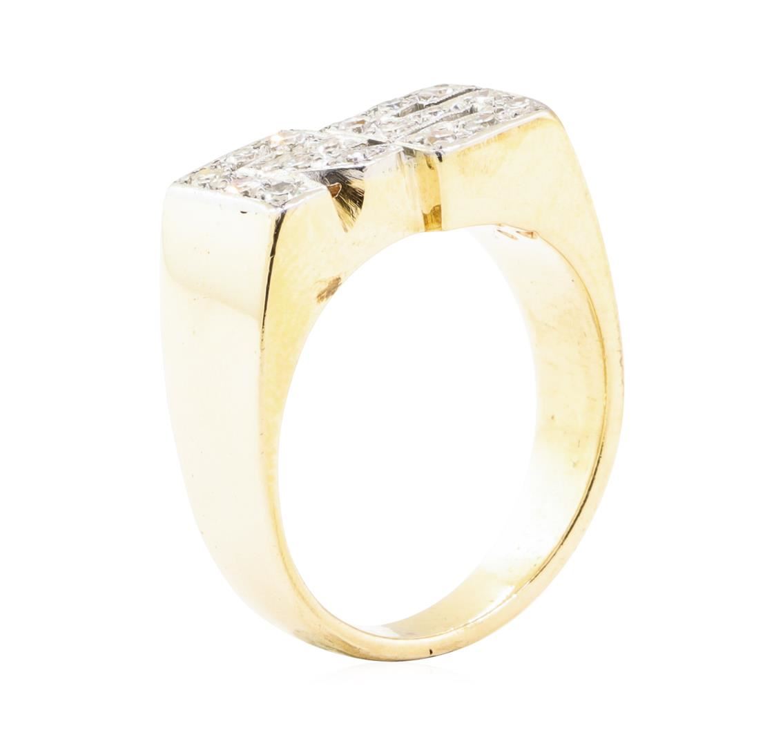 One "RS" initial ring featuring: 14KT yellow gold weighing 15.8 grams containing diamonds weighing 0.50ctw.