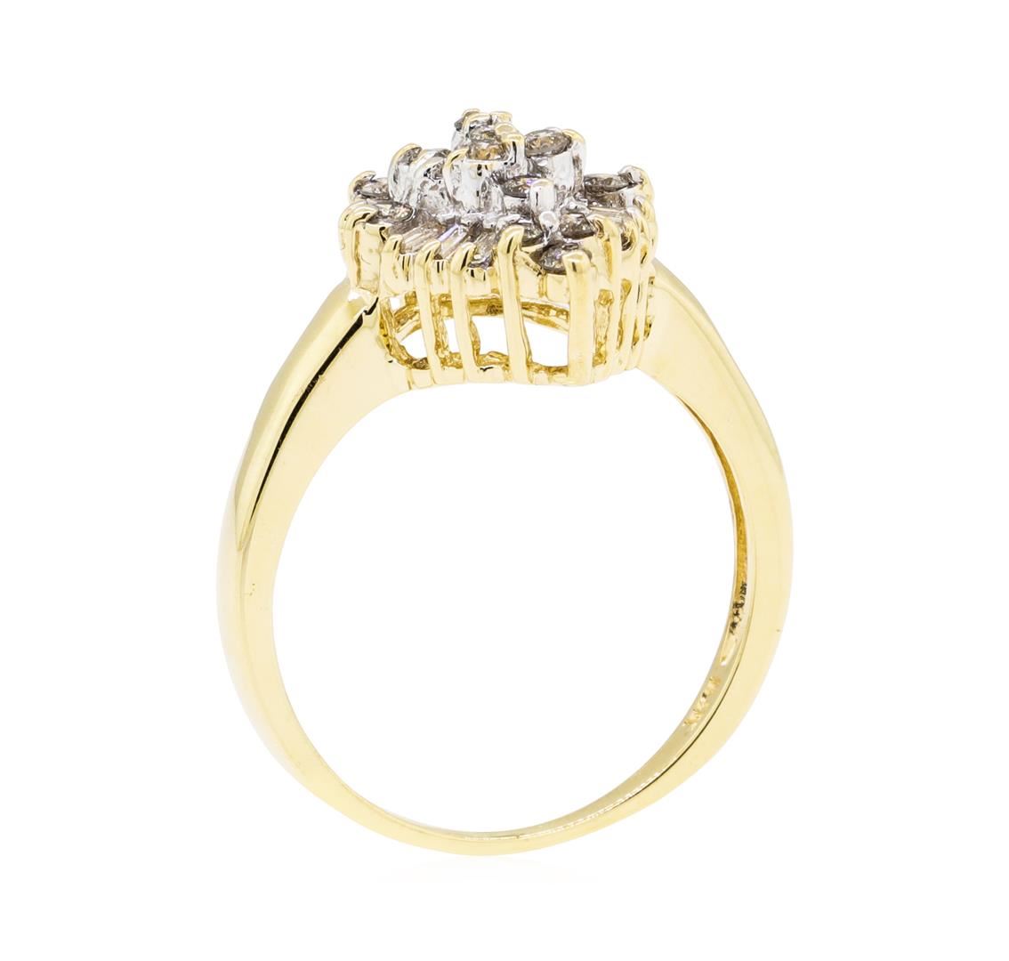 One lady's ring featuring: 10KT yellow gold weighing 2.7 grams containing diamonds weighing 0.50ctw.