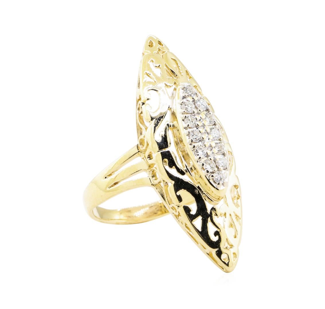 One ring with a marquise motif featuring: 14KT yellow gold weighing 6.4 grams containing diamonds weighing 0.50ctw.