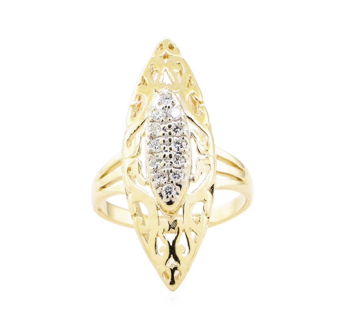 One ring with a marquise motif featuring: 14KT yellow gold weighing 6.4 grams containing diamonds weighing 0.50ctw.