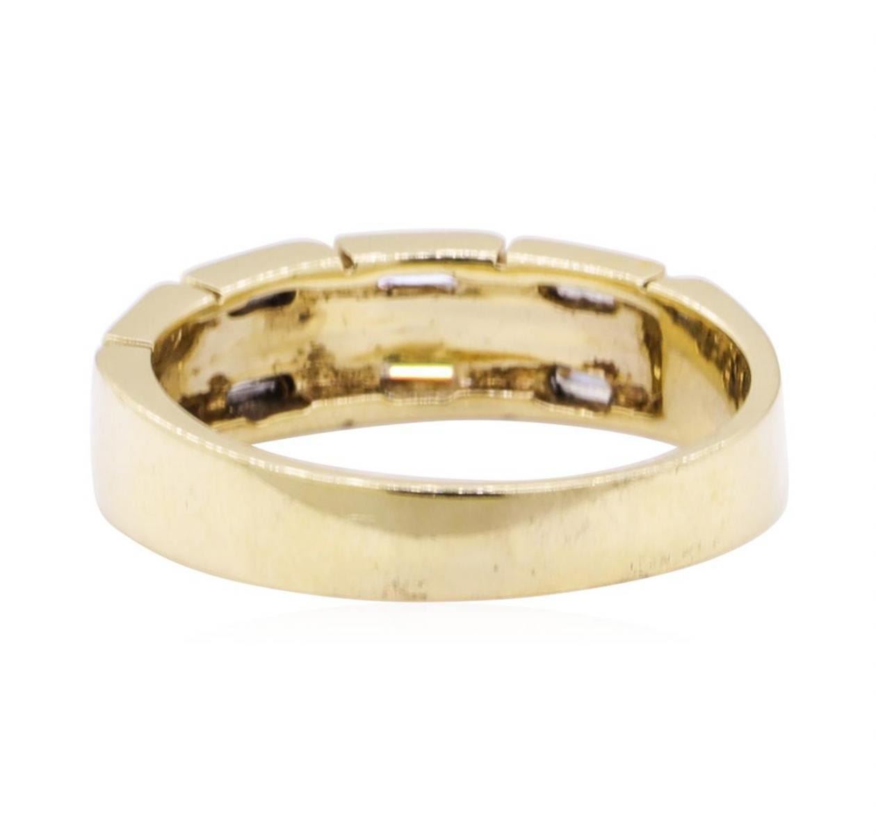 One ring featuring: 14KT yellow gold weighing 5.1 grams containing baguette cut diamonds weighing 0.50ctw. The ring has a straight line band motif.