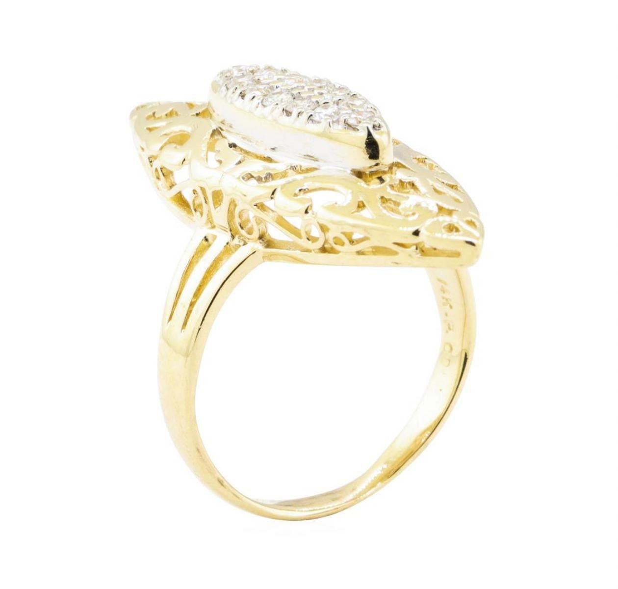 One ring with a marquise motif featuring: 14KT yellow gold weighing 6.4 grams containing diamonds weighing 0.50ctw.