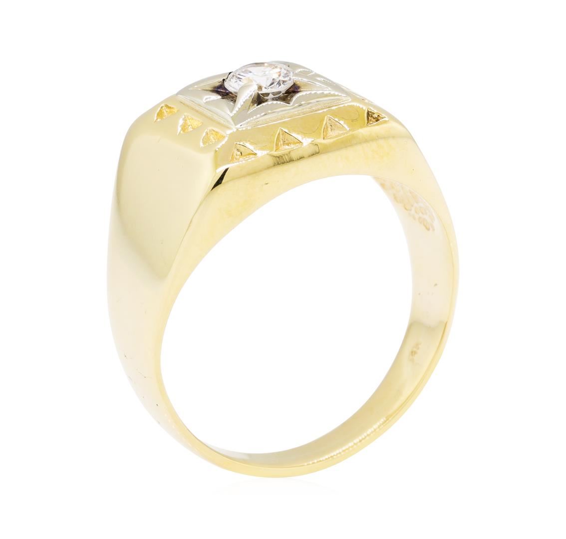 One men's ring featuring: 14KT yellow and white gold weighing 9.7 grams containing one diamond weighing 0.50ct.