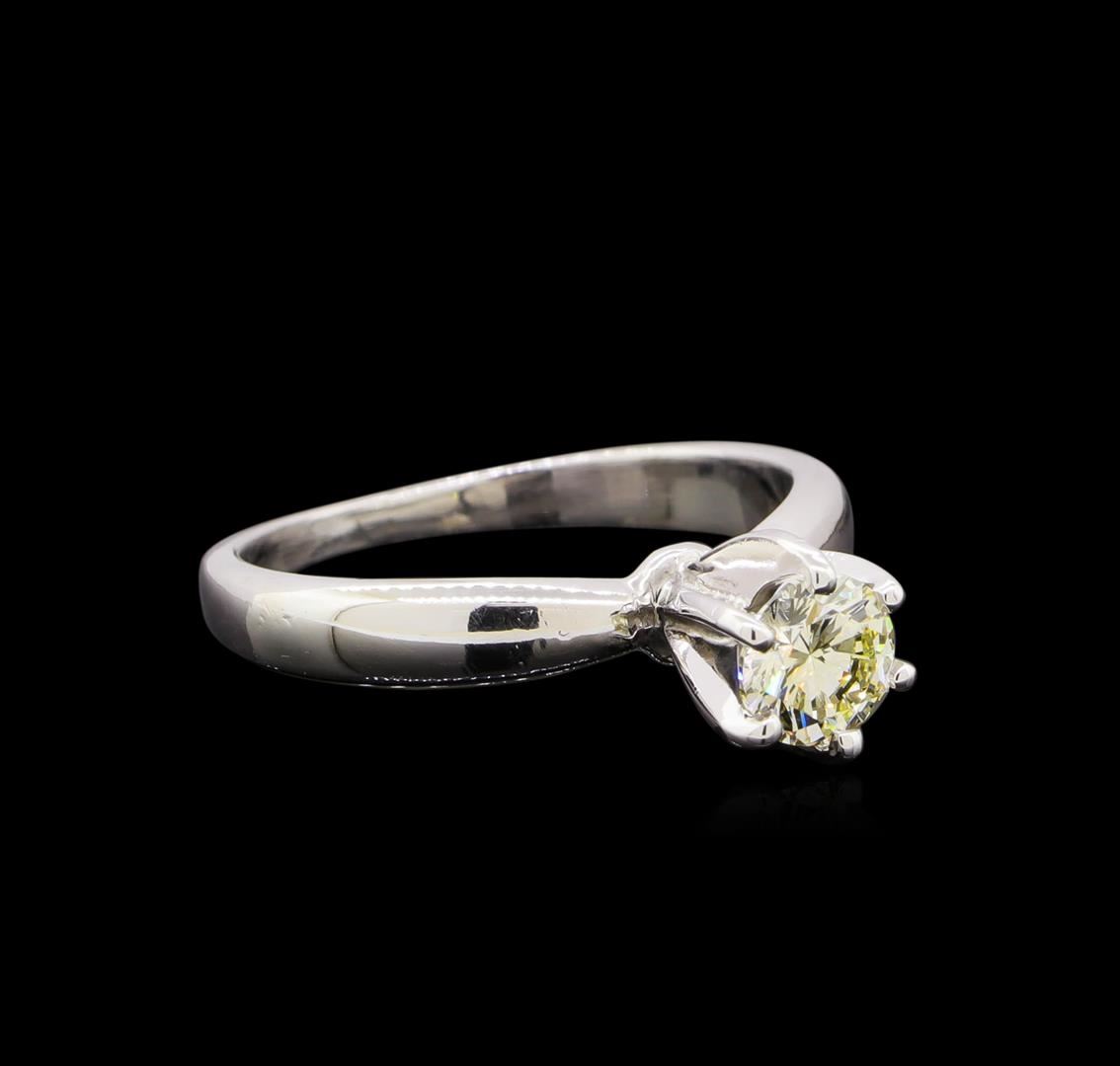 One platinum lady's diamond solitaire ring weighing 4.20 grams containing one round brilliant cut diamond with SI clarity and I-J color weighing 0.50ct. RBGS Appraised at $2,400.00.