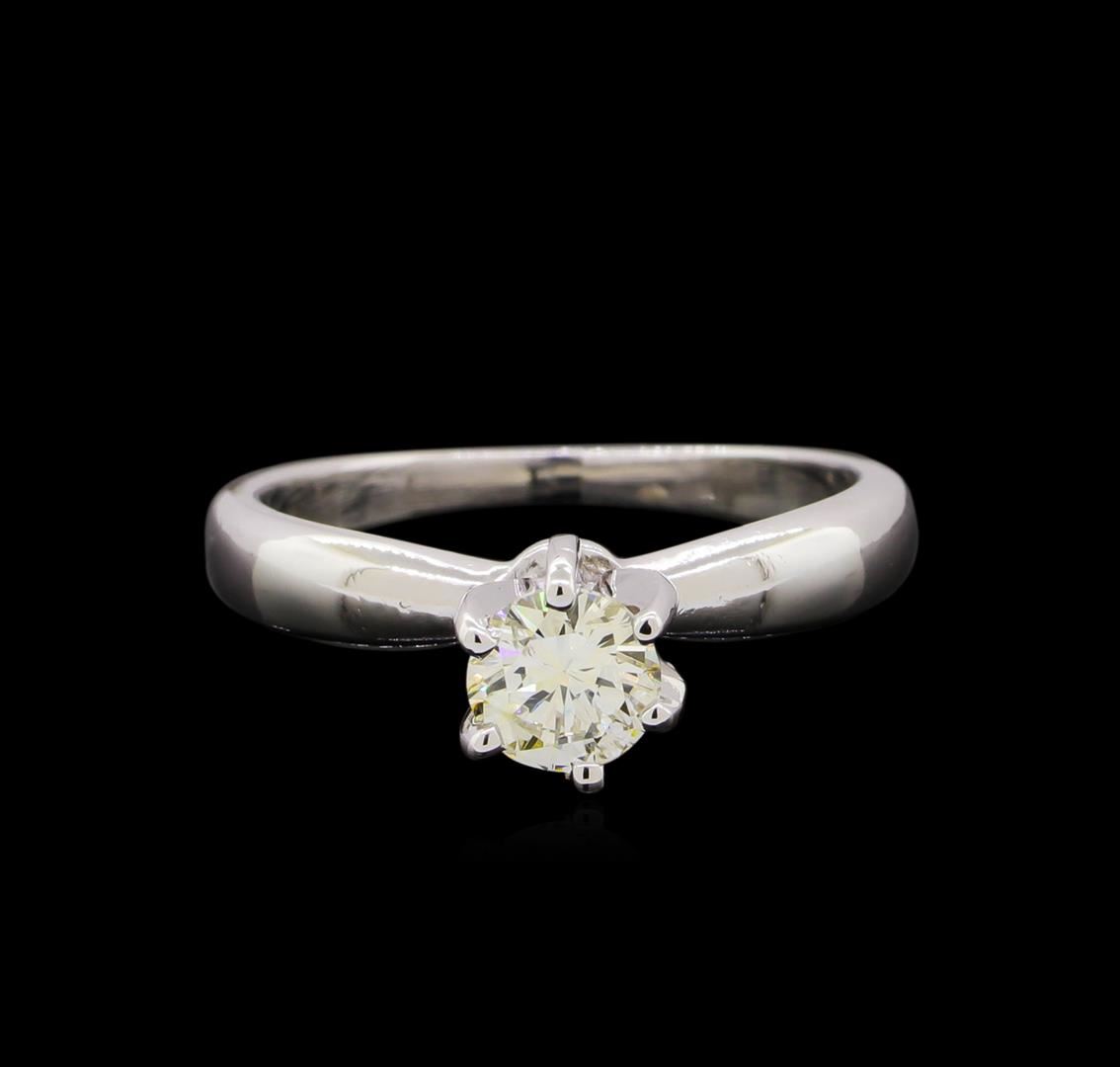 One platinum lady's diamond solitaire ring weighing 4.20 grams containing one round brilliant cut diamond with SI clarity and I-J color weighing 0.50ct. RBGS Appraised at $2,400.00.