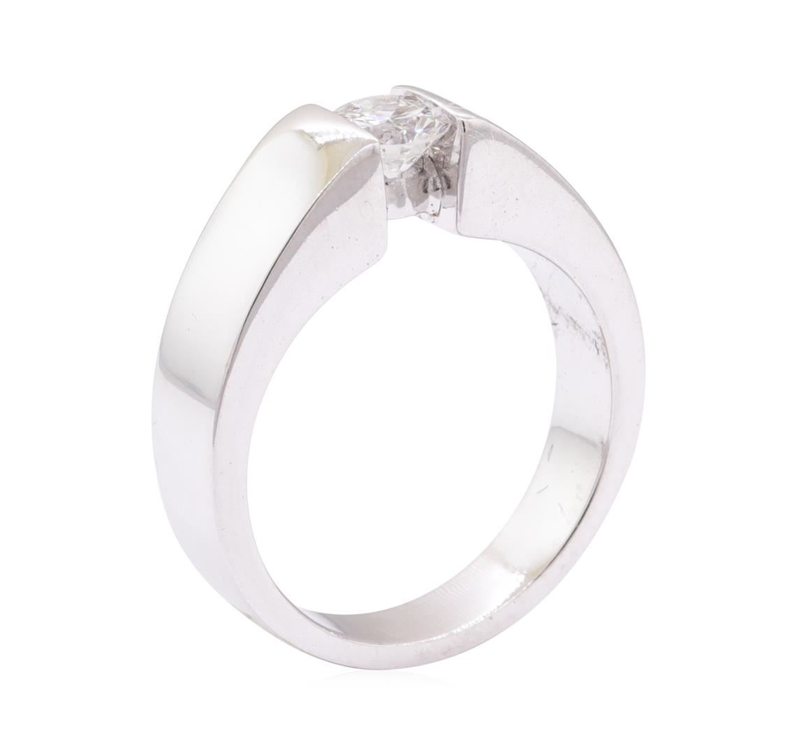 One ring featuring: 14KT white gold weighing 7.5 grams containing one round cut diamond weighing 0.50ctw. The ring has a cathedral solitaire motif.