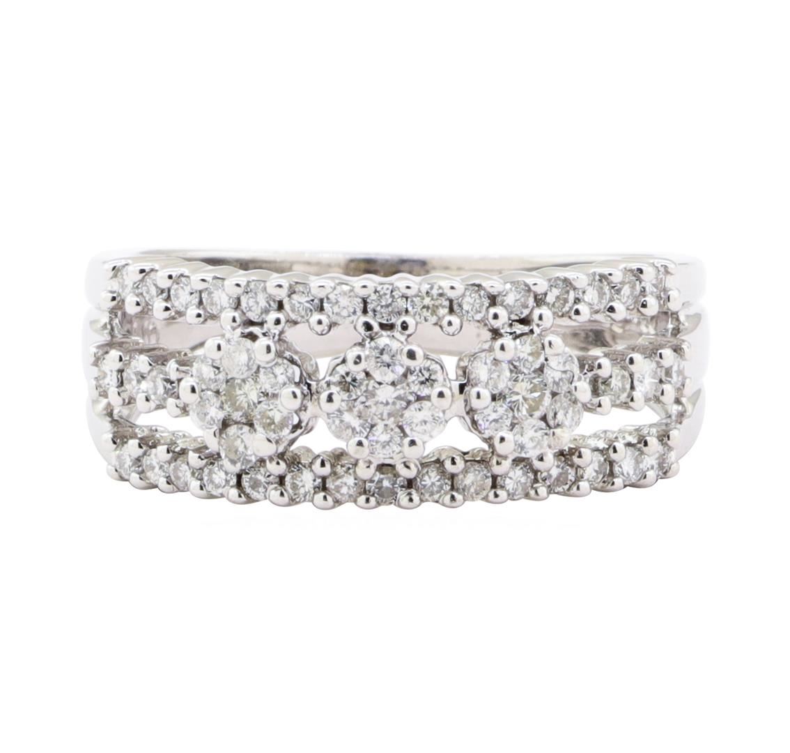 One three row ring featuring: 14KT white gold weighing 4.4 grams containing diamonds weighing 0.50ctw.