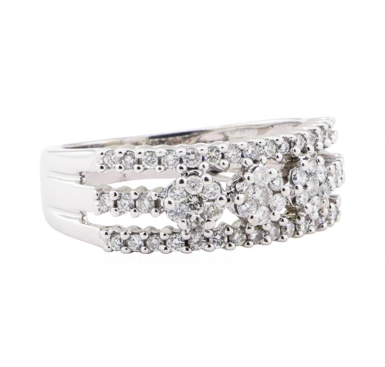 One three row ring featuring: 14KT white gold weighing 4.4 grams containing diamonds weighing 0.50ctw.