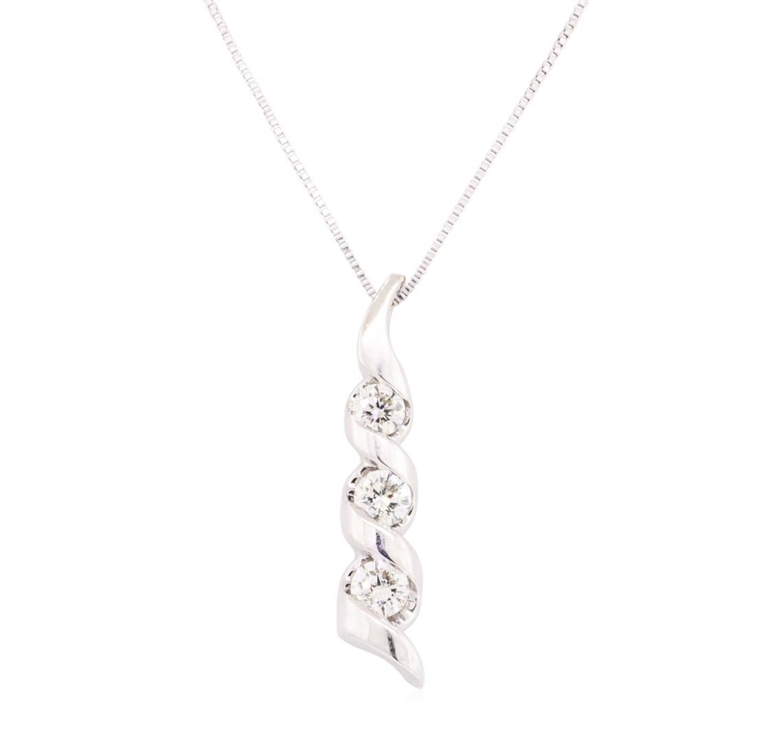 One pendant with chain featuring: 14KT white gold weighing 3.7 grams containing diamonds weighing 0.50ctw. The attached chain measures approximately nineteen inches in length.