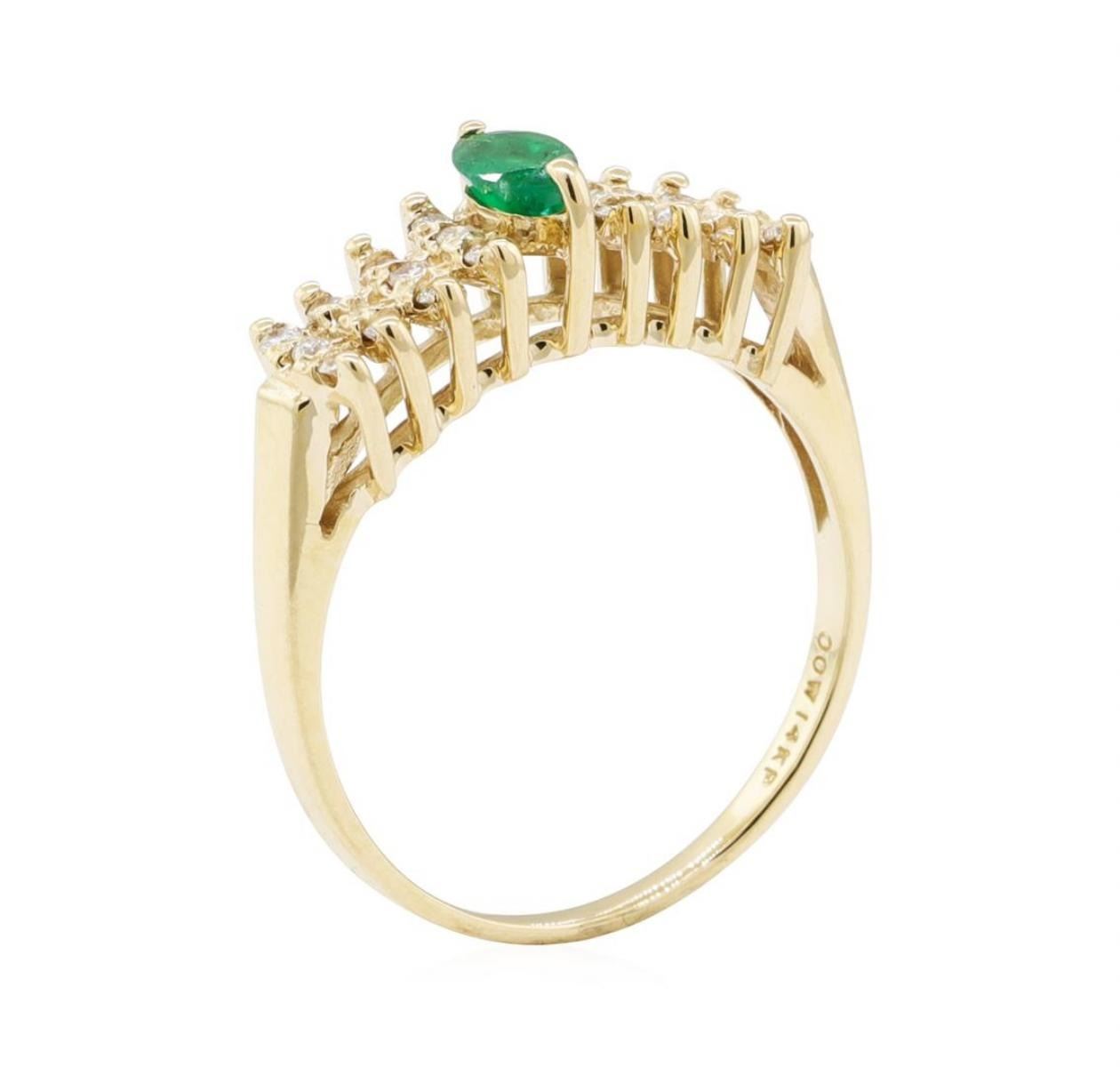One ring featuring: 14KT yellow gold weighing 2.4 grams containing one emerald weighing .15ct and diamonds weighing 0.35ctw.