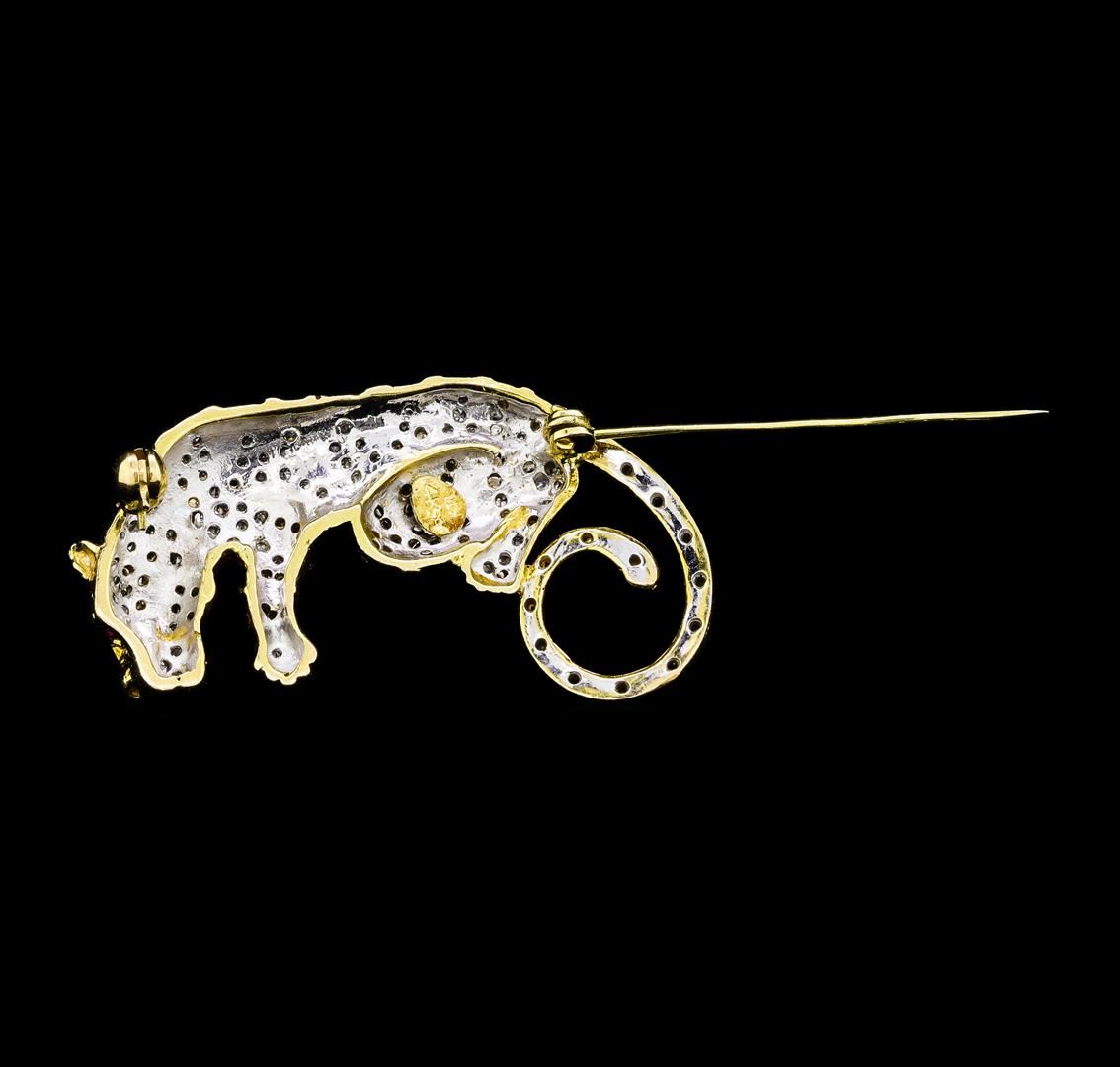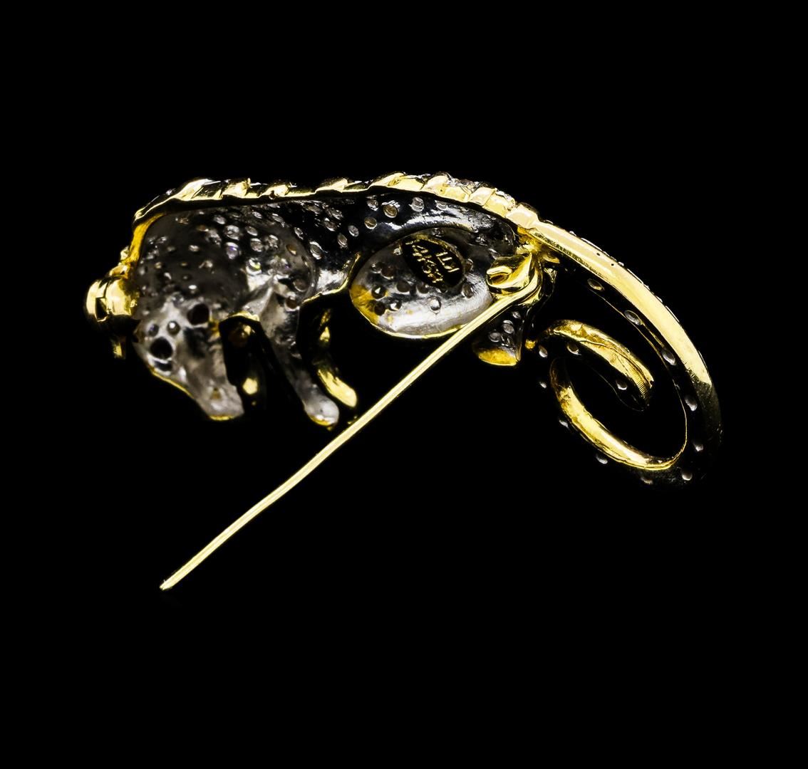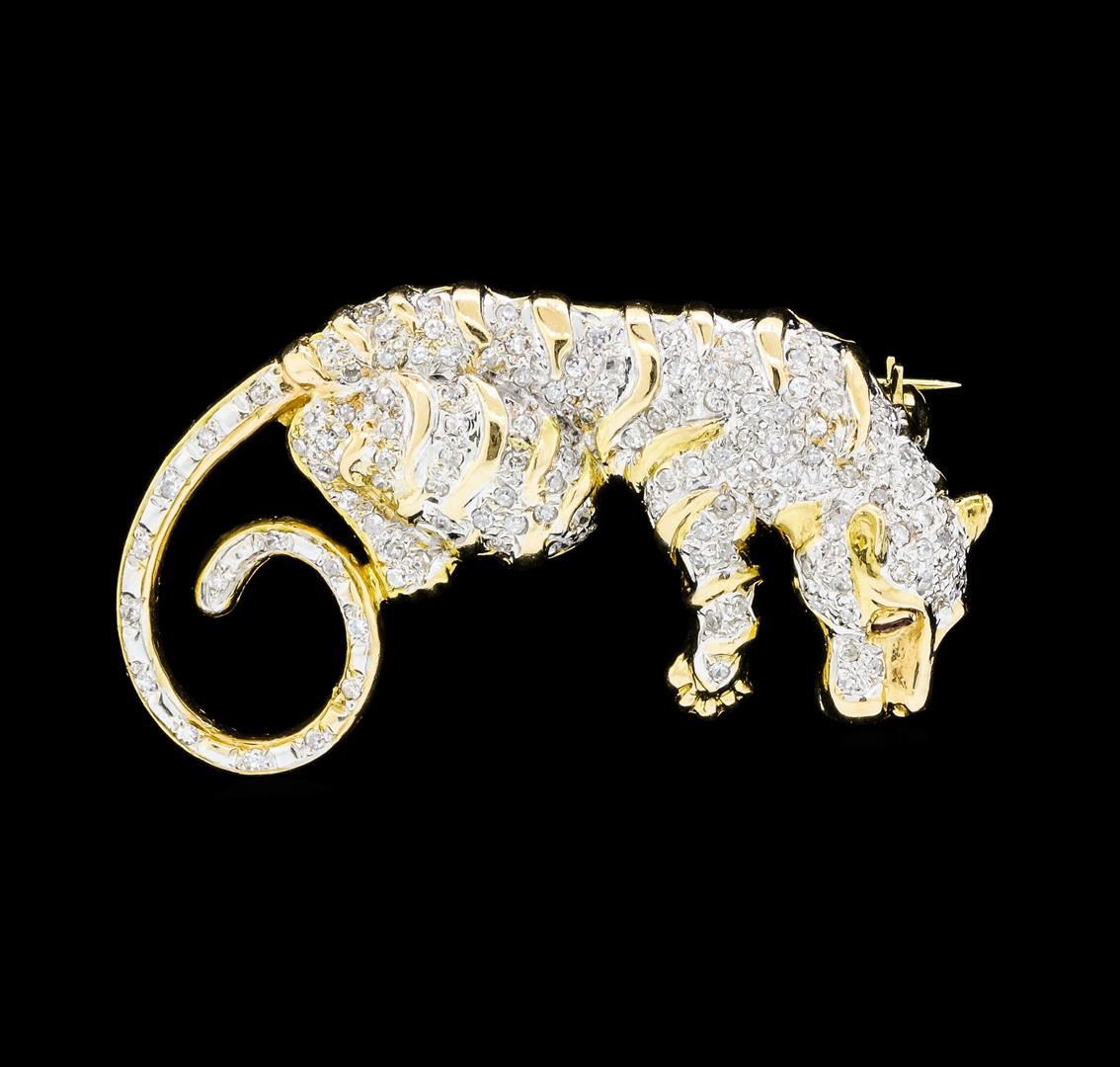 One lady's panther pin featuring: 14KT yellow gold weighing 7.9 grams containing diamonds weighing approximately 0.50ctw and rubies weighing approximately 0.04ctw.