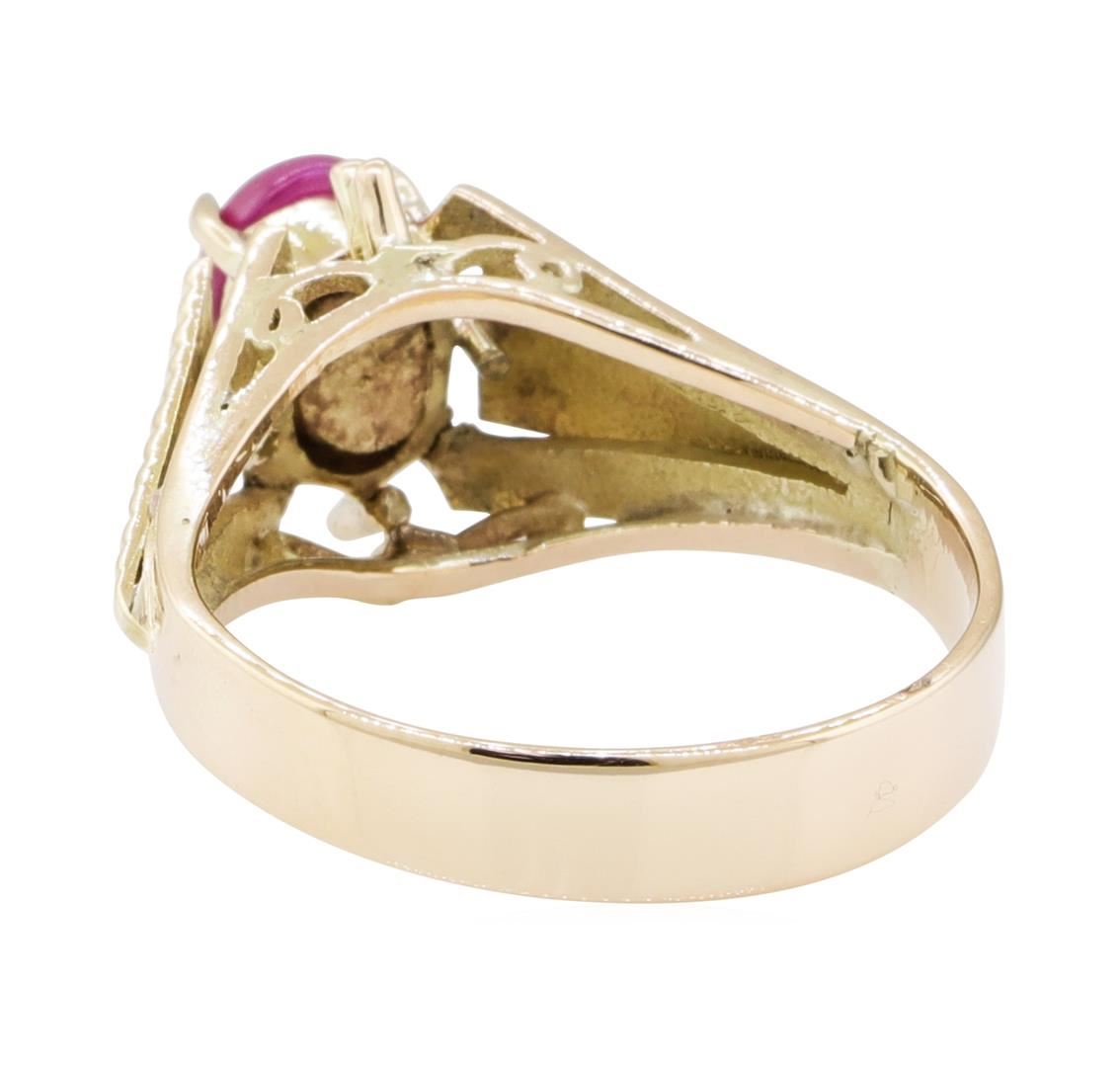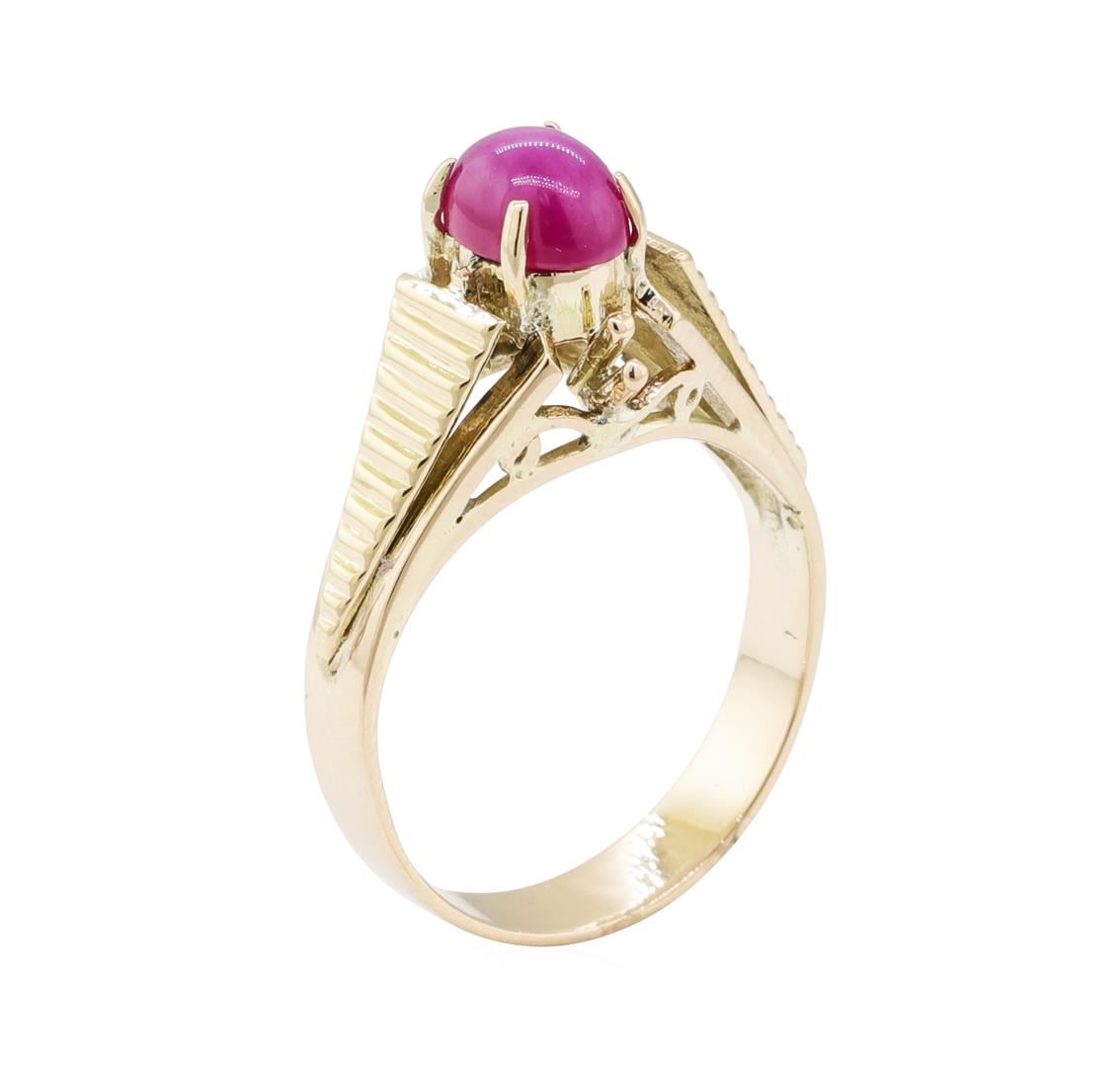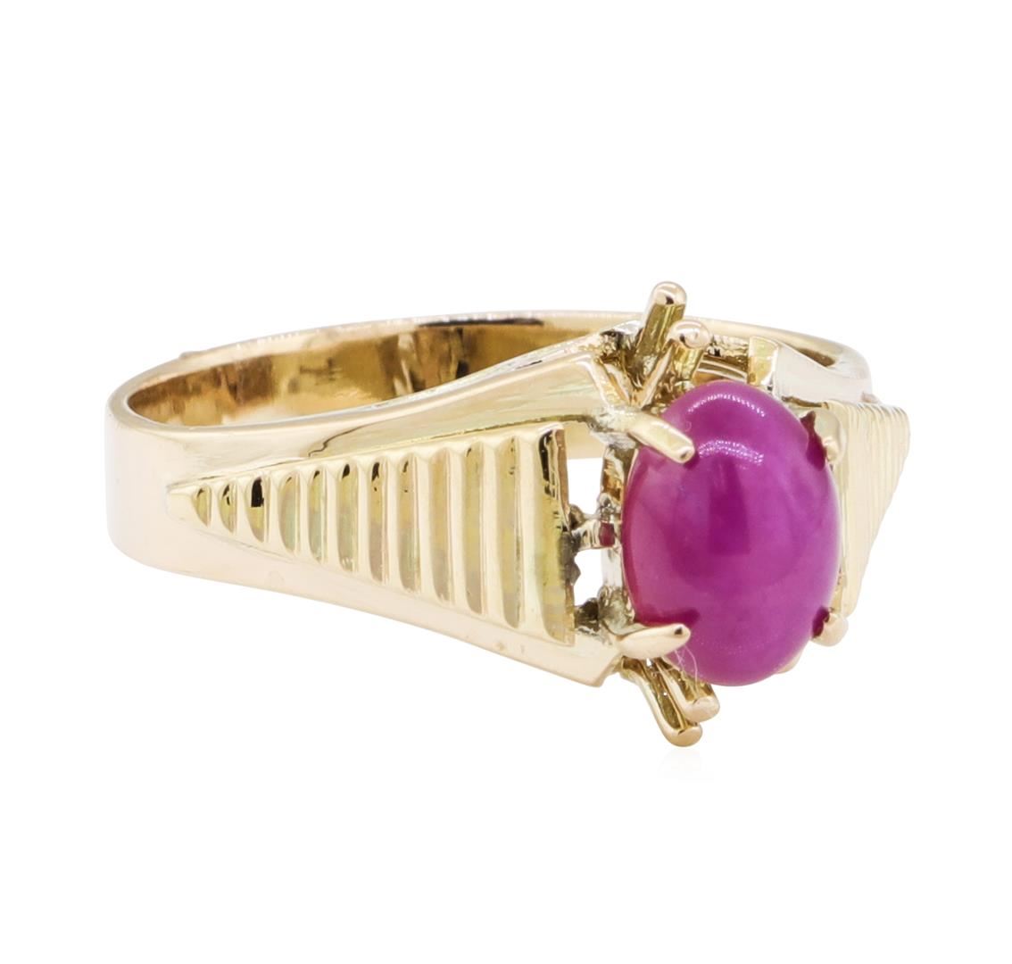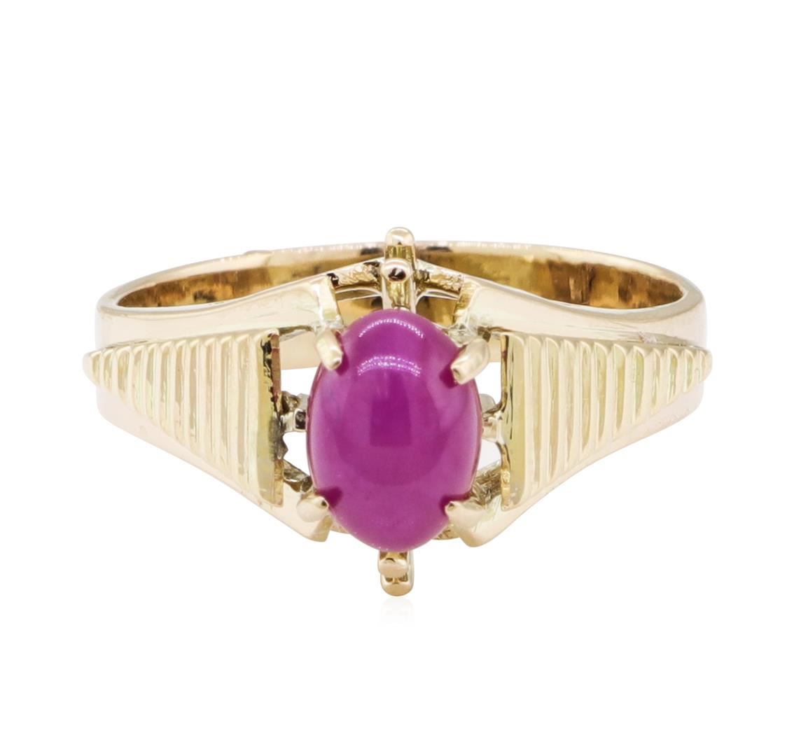 One lady's ring featuring: 10KT yellow gold weighing 3.8 grams containing one cabochon Lindy Star ruby ring weighing 0.50ct.