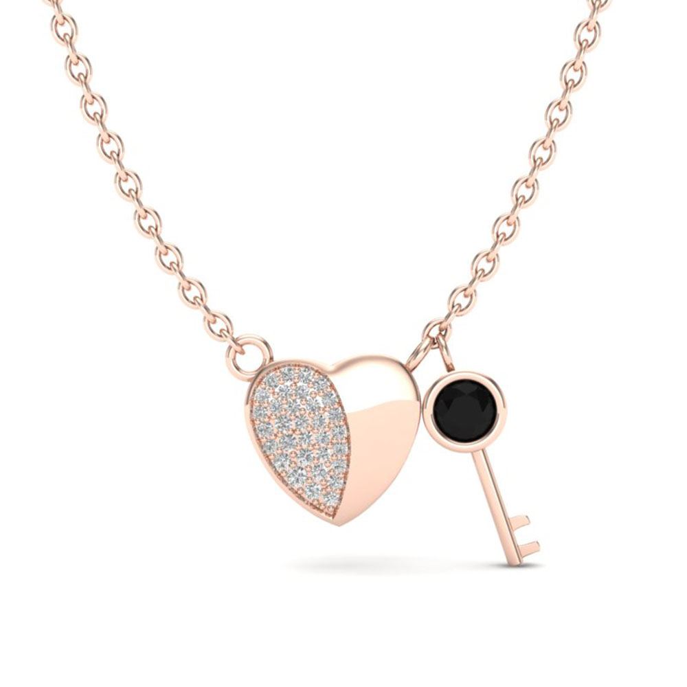 REF-28M6G - SKU: 22672 ---- 0.50 ctw Micro Black & Diamond Key to The Heart Necklace 14k Rose Gold