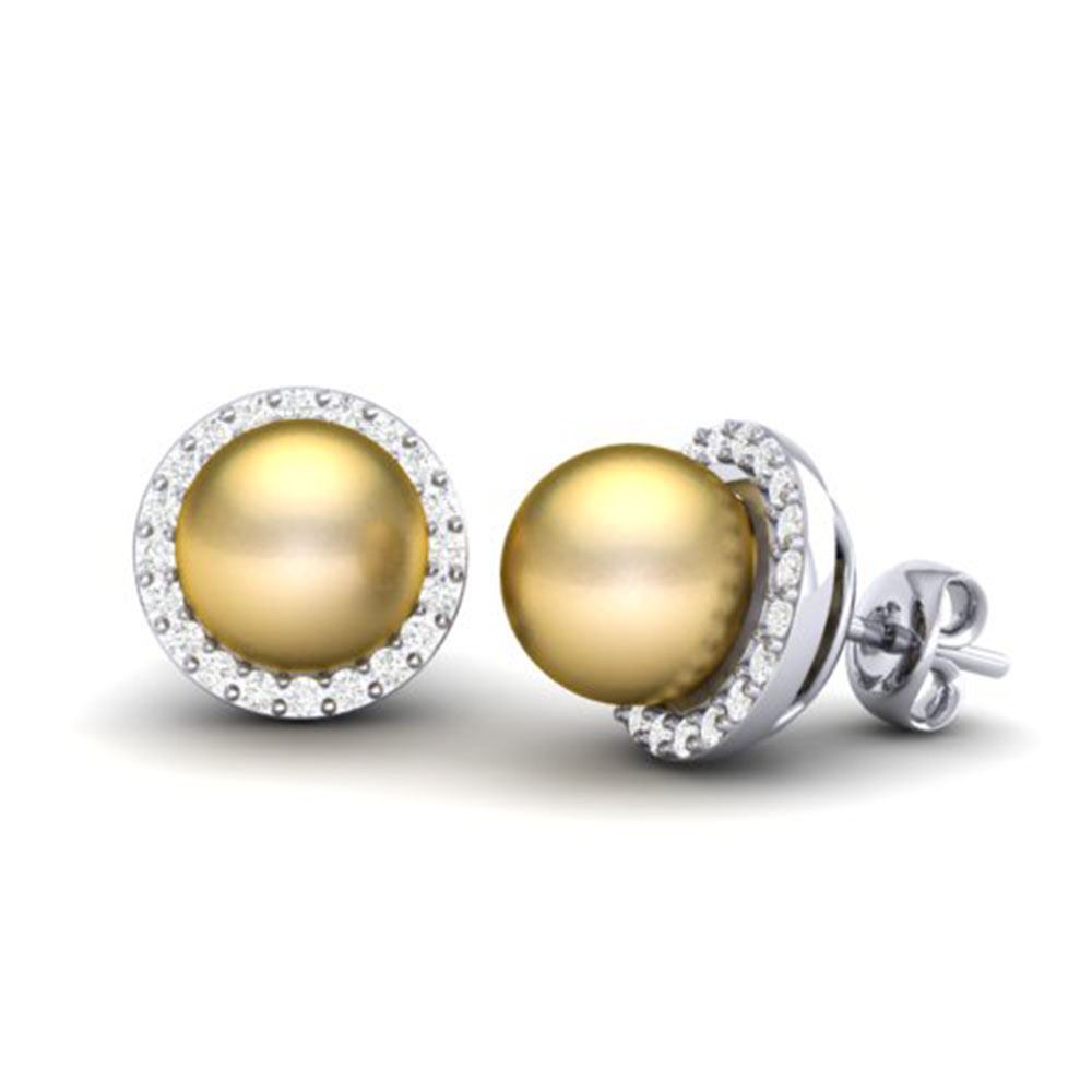 REF-46X5A - SKU: 21494 ---- 0.50 ctw Micro Pave Diamond & Golden Pearl Earrings 18k White Gold