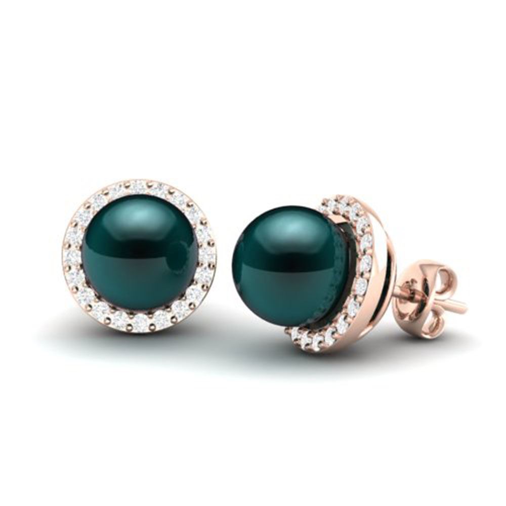 REF-46K5Y - SKU: 21498 ---- 0.50 ctw Micro VS/SI Diamond & Peacock Pearl Earrings 14k Rose Gold