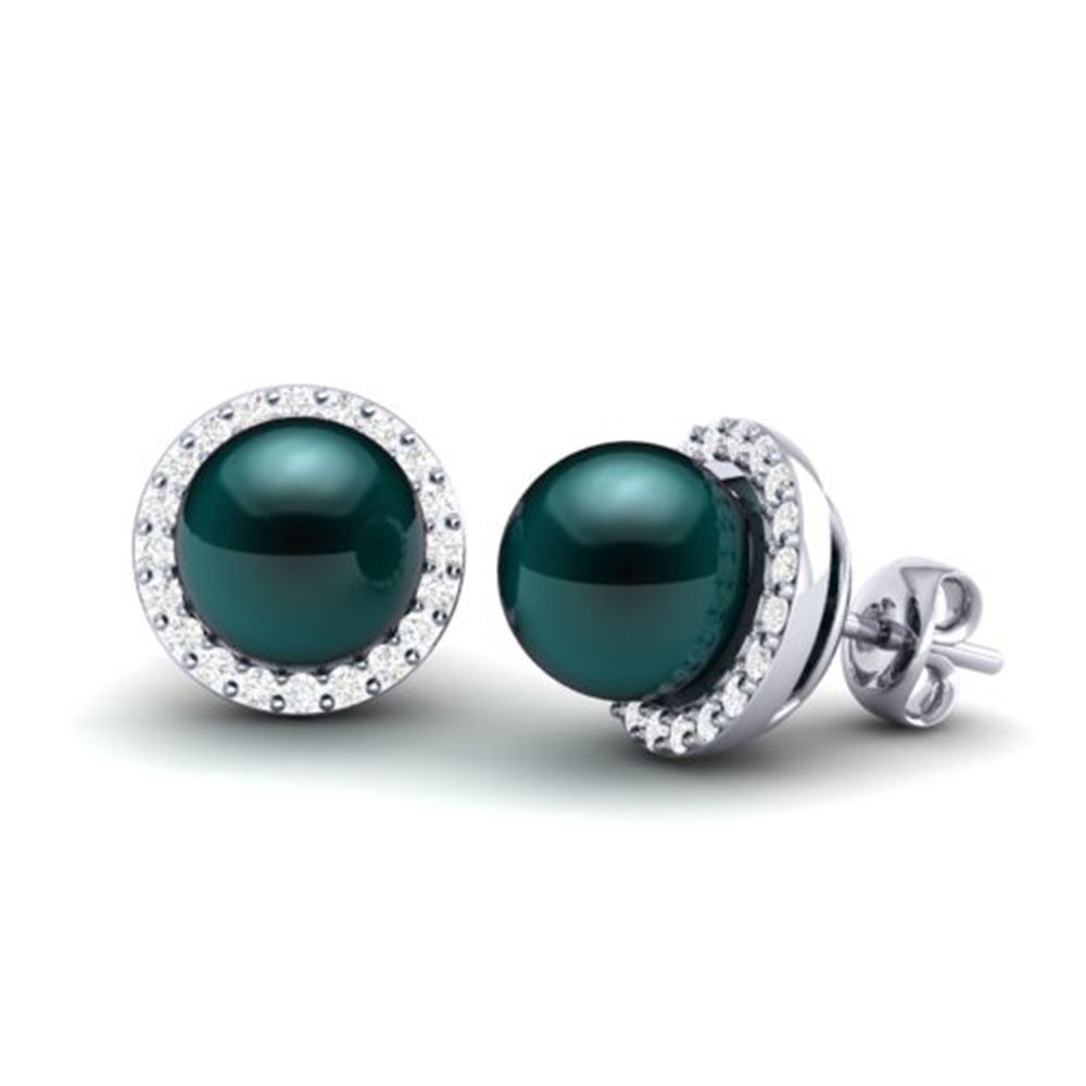 REF-46N5F - SKU: 21499 ---- 0.50 ctw Micro VS/SI Diamond & Peacock Pearl Earrings 18k White Gold