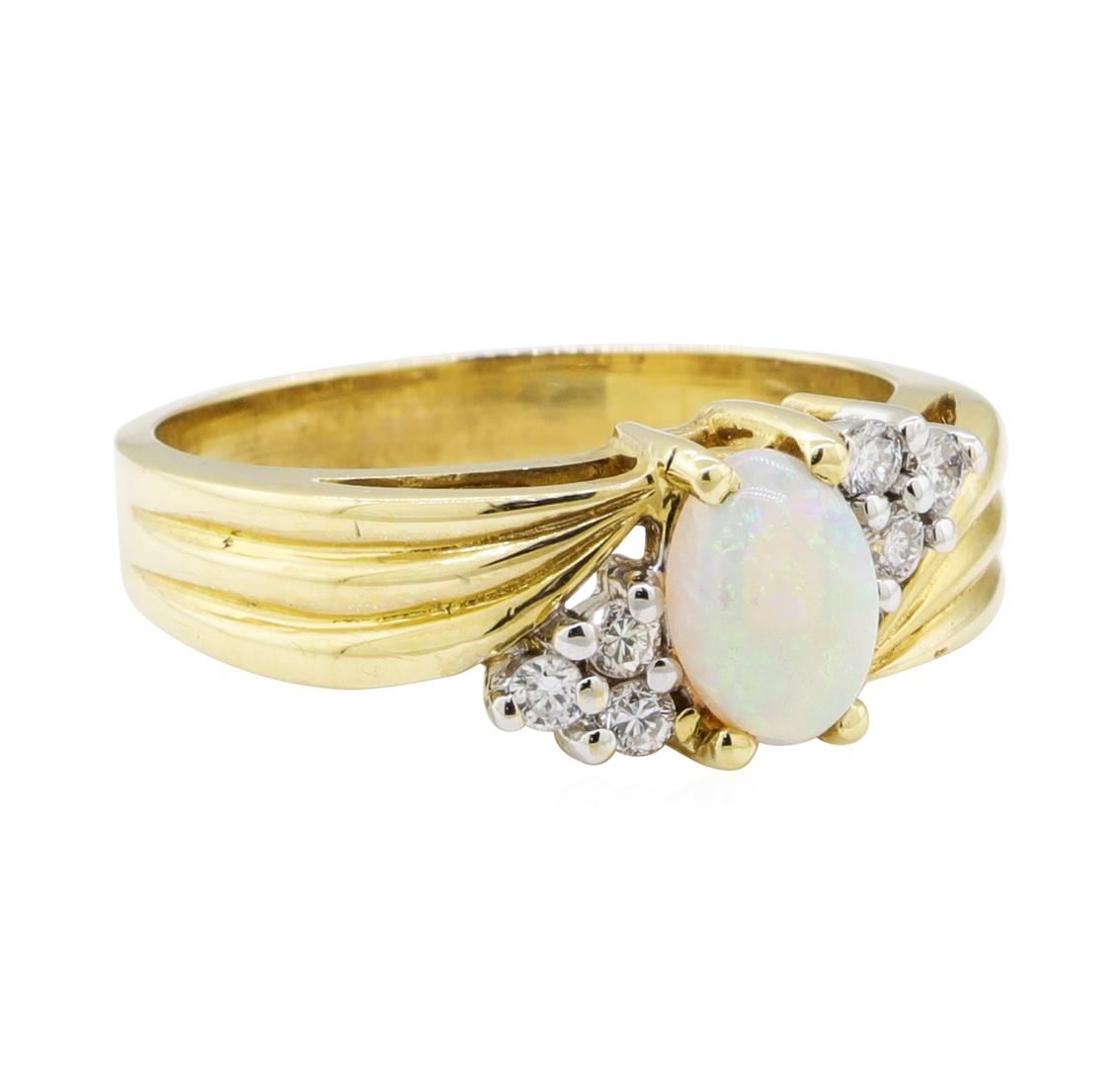 One ring featuring: 14KT yellow gold weighing 4.6 grams containing one opal weighing 0.35ct and diamonds weighing 0.15ctw.