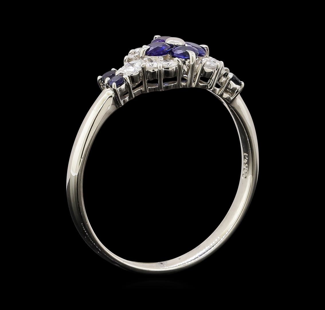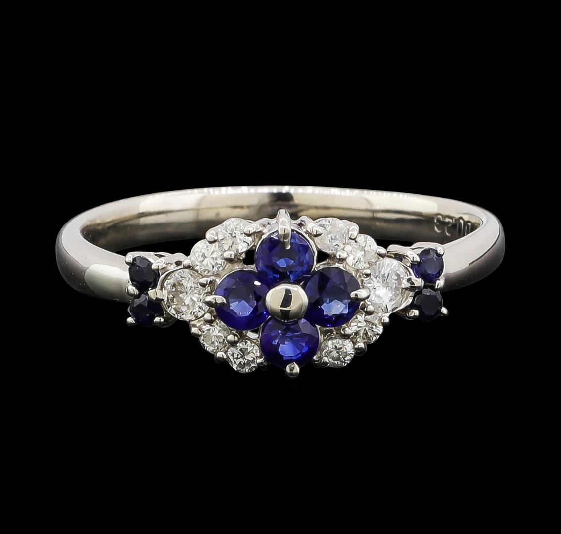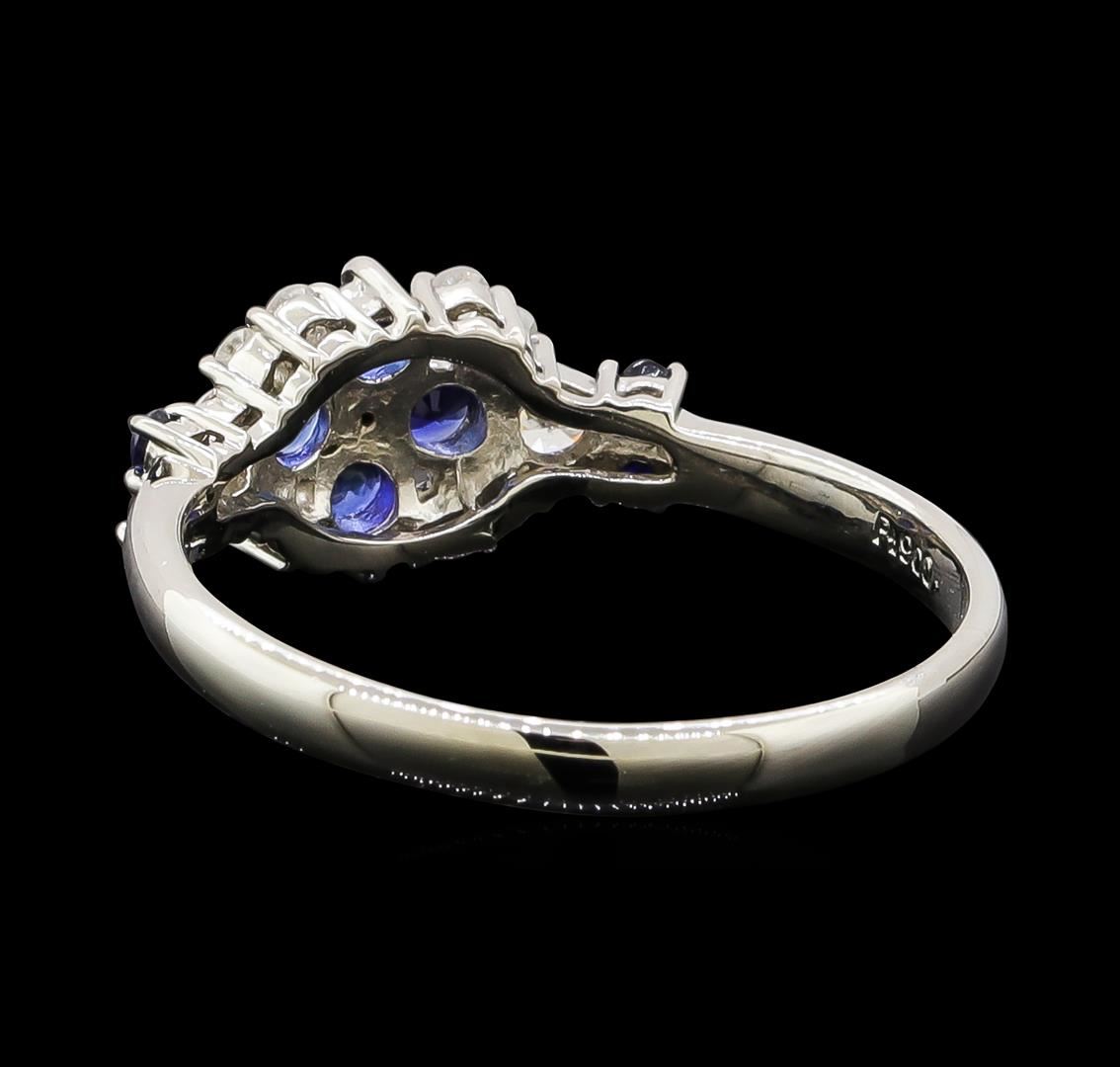 One ring featuring: Platinum containing Sapphire with a total weight of 0.50ct and Diamonds with a total weight of 0.23ct. Total Weight of Ring: 3.5 grams.