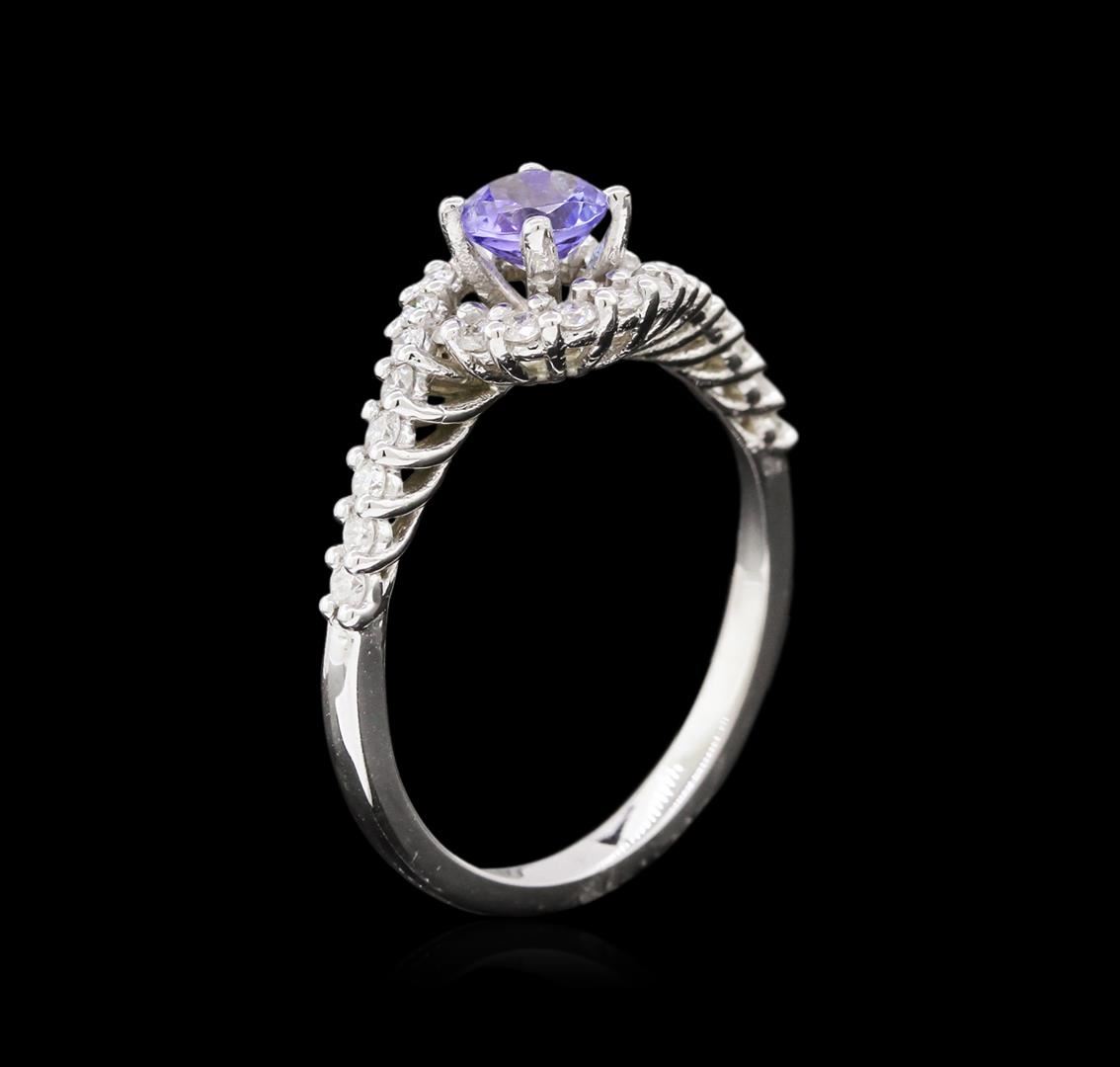 One ring featuring: 14KT white gold weighing 2.70 grams containing one tanzanite with a total weight of 0.50ct and diamonds with a total weight of 0.37ct.