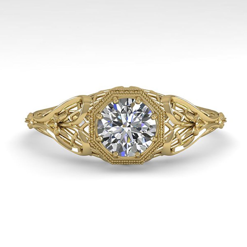REF-107H3R - SKU: 36019 ---- 0.50 ctw VS/SI Diamond Engagment Ring Art Deco 18k Yellow Gold