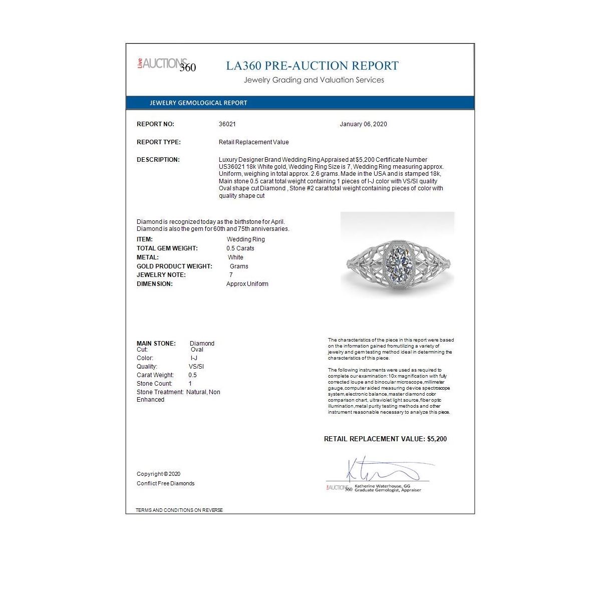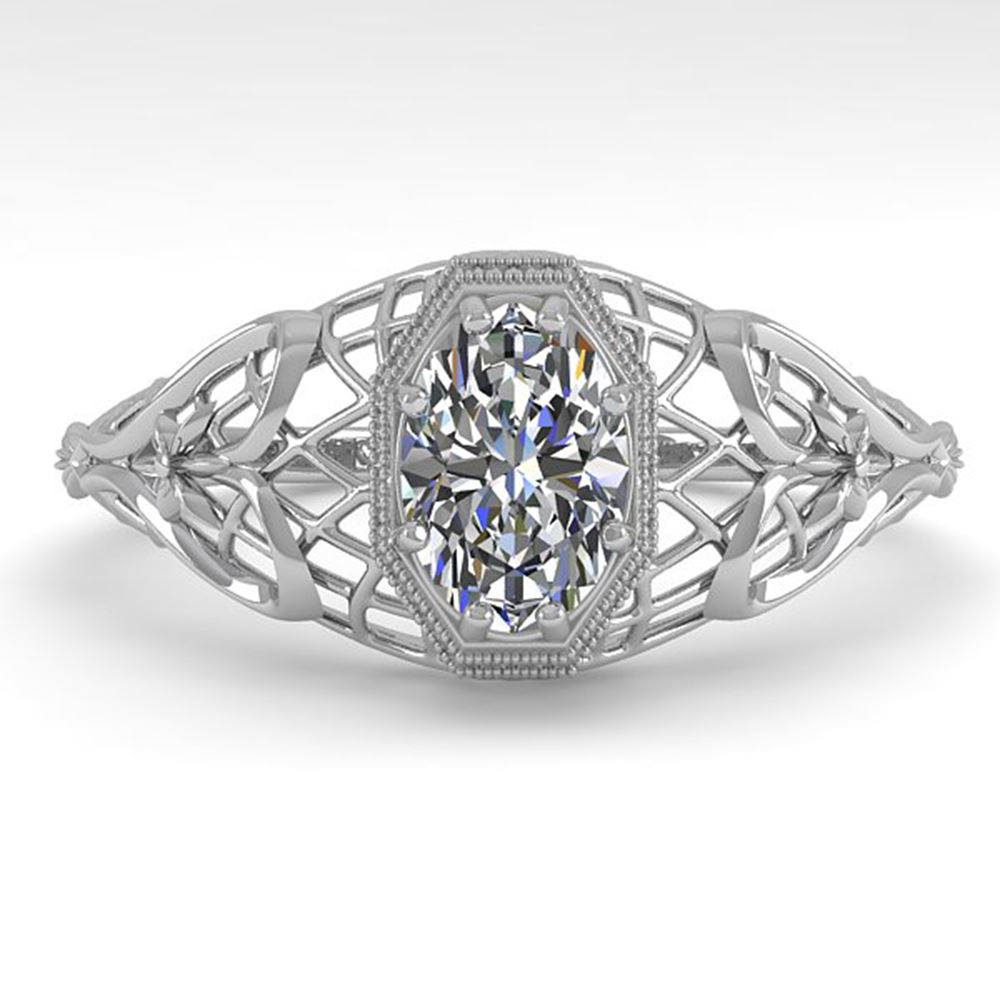 REF-104Y8X - SKU: 36021 ---- 0.50 ctw VS/SI Oval Diamond Engagment Ring Art Deco 18k White Gold