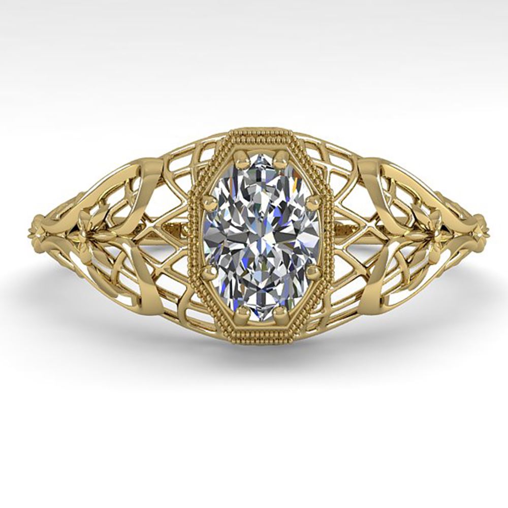 REF-104A8N - SKU: 36022 ---- 0.50 ctw VS/SI Oval Diamond Engagment Ring Art Deco 18k Yellow Gold