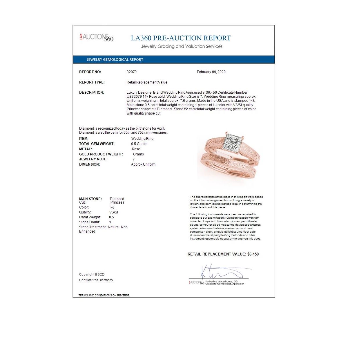 REF-98N2F - SKU: 32079 ---- 0.50 ctw VS/SI Princess Diamond 2pc Wedding Set 14k Rose Gold