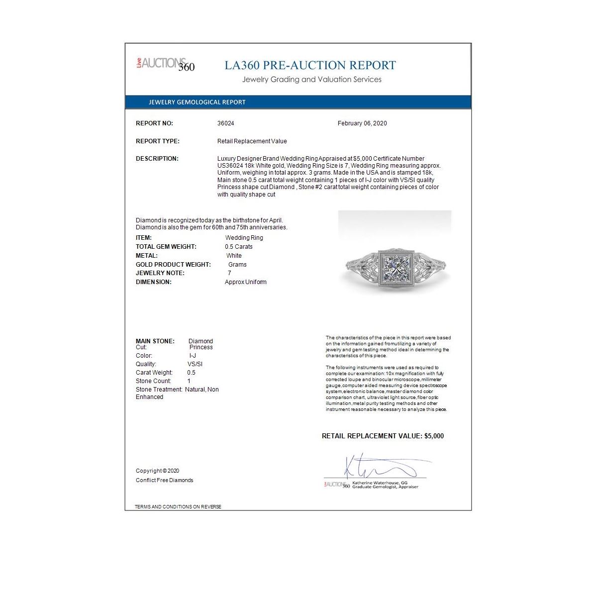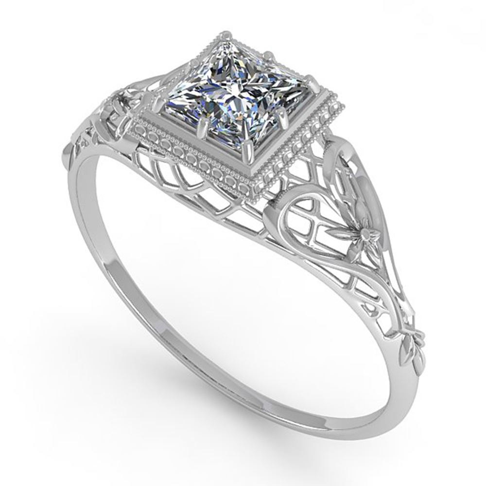 REF-113A8N - SKU: 36024 ---- 0.50 ctw VS/SI Princess Diamond Engagment Ring Art Deco 18k White Gold