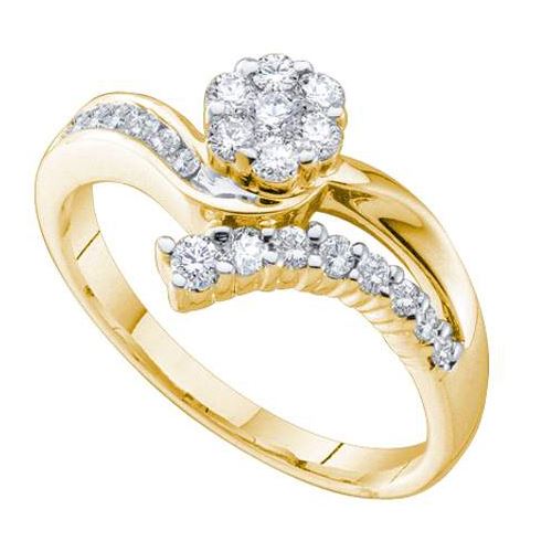 REF-52R4H ---- 0.50CT Diamond Flower 14KT Ring Yellow Gold - SKU: GD 39436