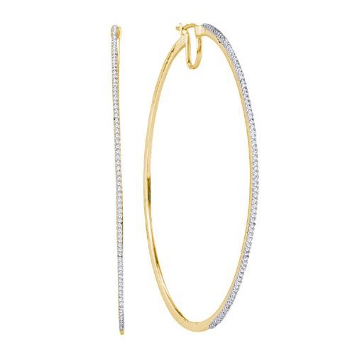 REF-52K4N ---- 0.50CT Diamond Hoops 10KT Earrings Yellow Gold - SKU: GD 65071