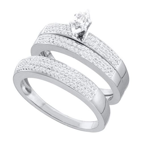 REF-97M4R ---- 0.50CT Diamond Trio Set 14KT Ring White Gold - SKU: GD 48835