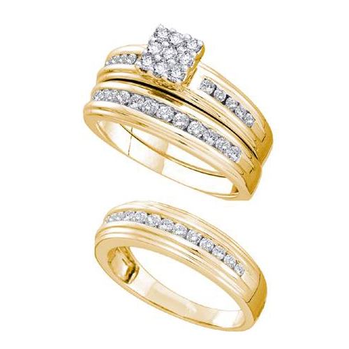 REF-63M8R ---- 0.50CT Diamond Trio Set 14KT Ring Yellow Gold - SKU: 46742