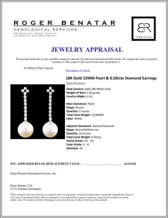 Regarding Appraised Jewelry and Loose Stones - Auctionfarm sends them out to a third party for Retail Replacement Value Appraisals, which are the most common. These types of evaluations are written for insurance needs. This would be the cost to replace the jewelry with an item of equal quality and kind, considered to be the current market price or the replacement value. This type of appraisal is done to protect you in the event of damage or loss of a valuable item. Our appraisals are conducted by independent 3rd Party appraisal firms that utilizes Certified GIA Gemologist. Appraisals should be used for verification of gemstone and/or metal weight, size, and grade only, not actual value. Appraisal value should be considered for insurance purposes only, not actual value, as price varies greatly from retail locations thru out the world. Items should not be purchased with the expectation to resell for appraisal price, or for profit.