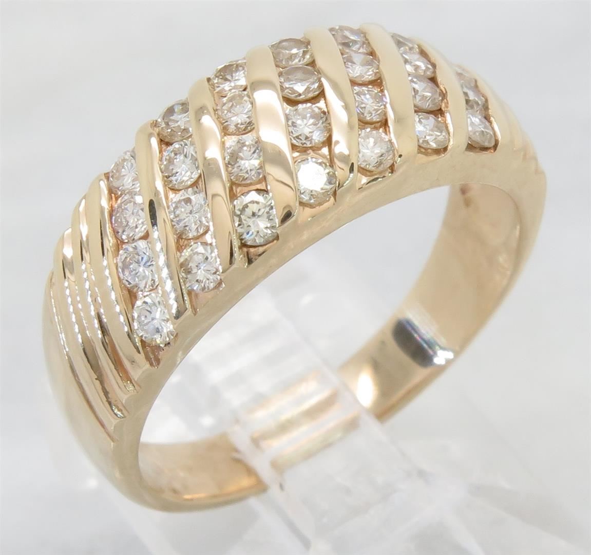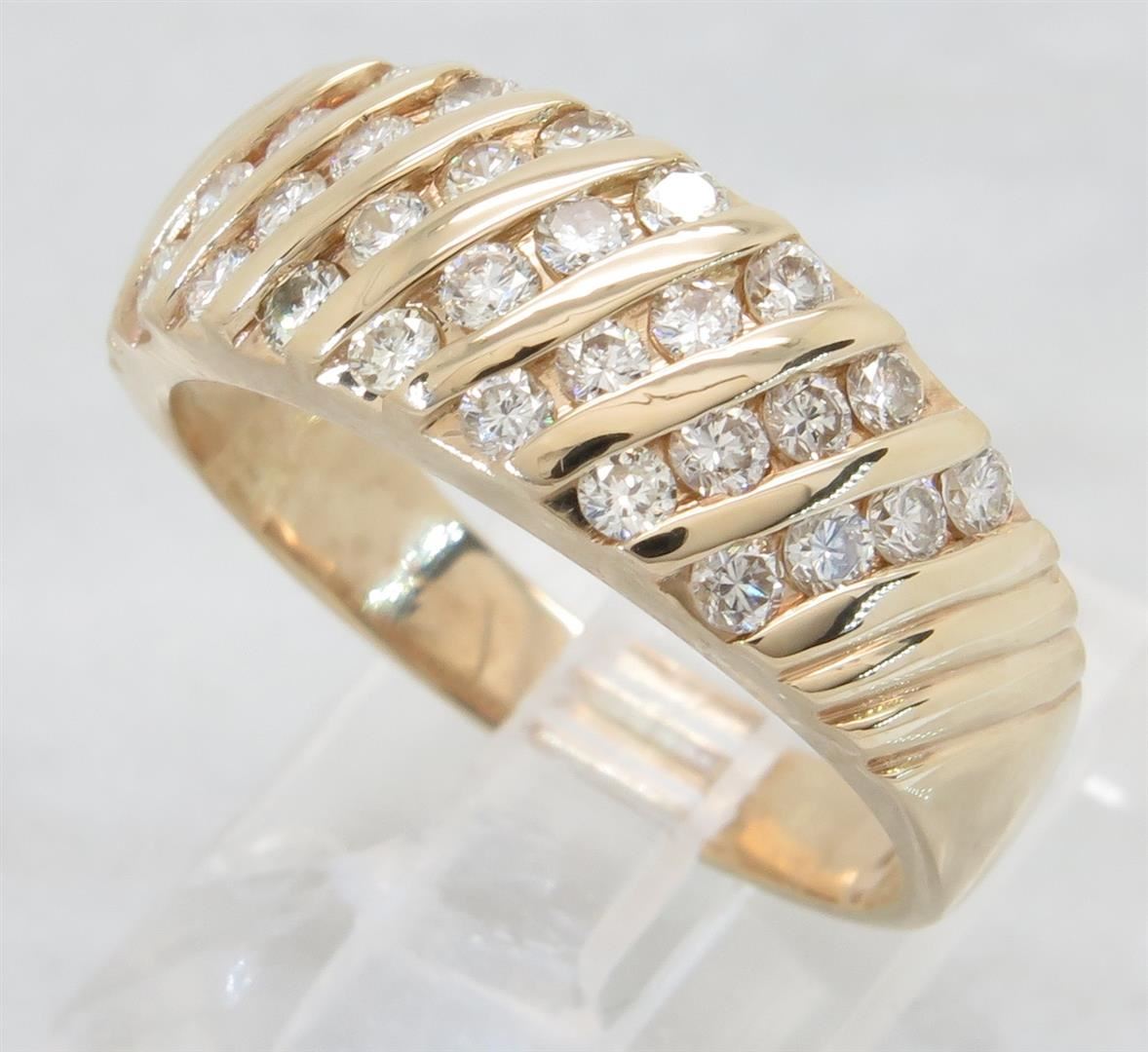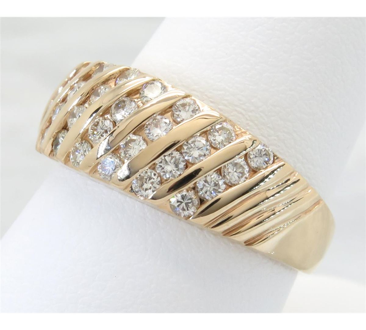 One tested 14K yellow gold diamond ring. Containing: 28 Round Brilliant Cut Diamonds. Approximate total diamond weight: .50CTW. Diamonds are graded in the mounting, unless otherwise stated. Weight: 5.1 grams. Size: 7.5.