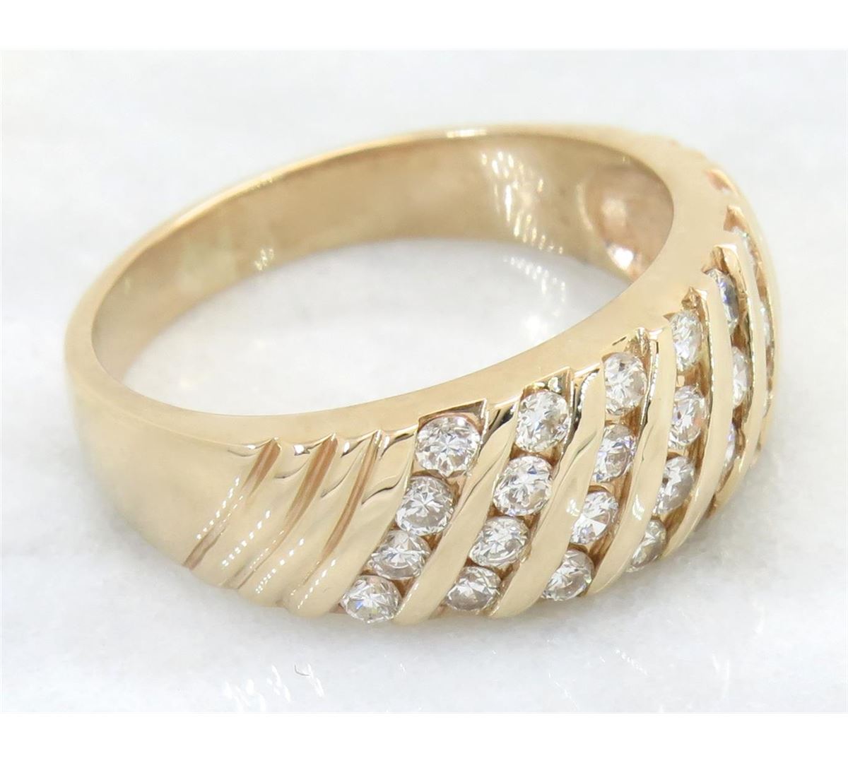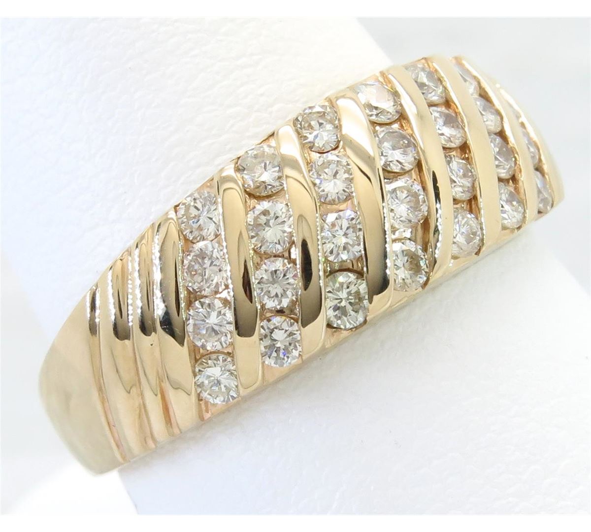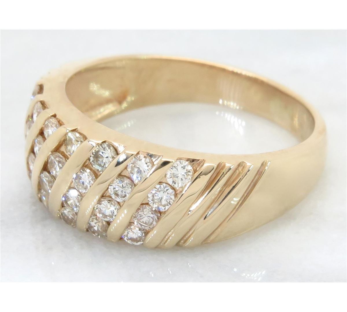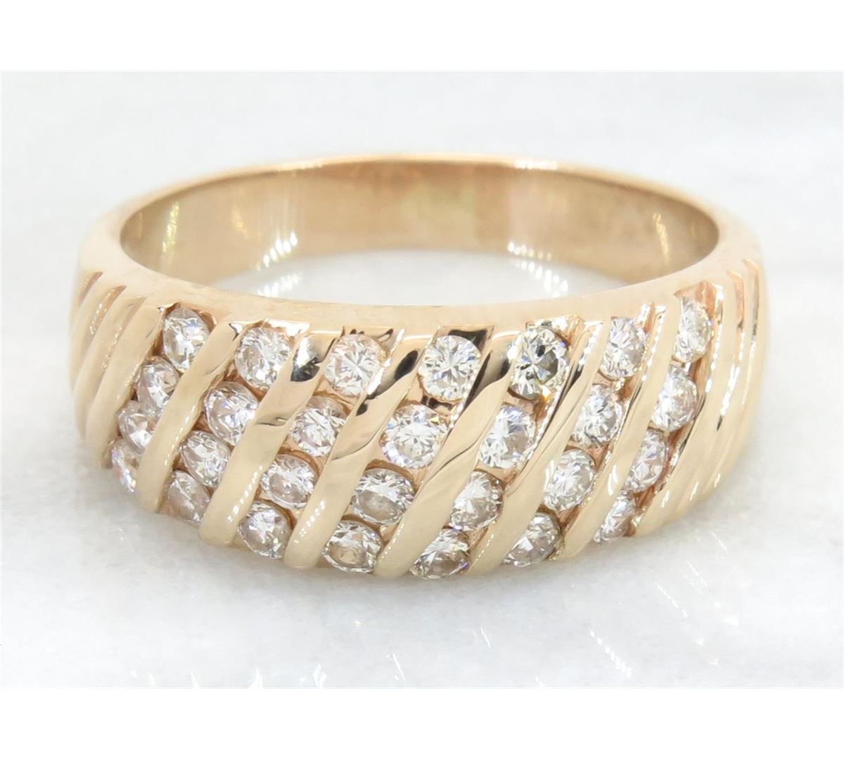 One tested 14K yellow gold diamond ring. Containing: 28 Round Brilliant Cut Diamonds. Approximate total diamond weight: .50CTW. Diamonds are graded in the mounting, unless otherwise stated. Weight: 5.1 grams. Size: 7.5.