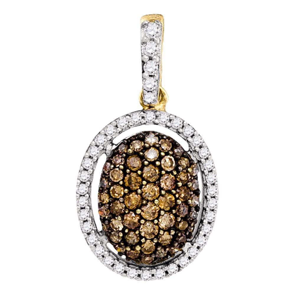 REF-22X4Y- SKU: GD81657 ---- 0.51 CTW Brown Color Diamond Oval Pendant 10KT Yellow Gold