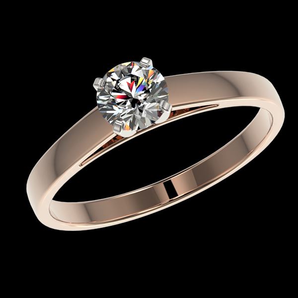 REF-54W2F -36459 ---- 0.51 CTW Certified H-SI/I Quality Diamond Solitaire Engagement Ring 10K Rose Gold ---- Luxury Designer Brand Ring Appraised at $3,600 Certificate Number US36459 10k Rose gold, Ring Size is 7, Ring measuring approx. Uniform, weighing in total approx. 2.6 grams. Made in the USA and is stamped 10k, Main stone 0.51 carat total weight containing 1 pieces of H-J color with SI/I quality Round shape cut Diamond , Stone #2 carat total weight containing pieces of color with quality shape cut