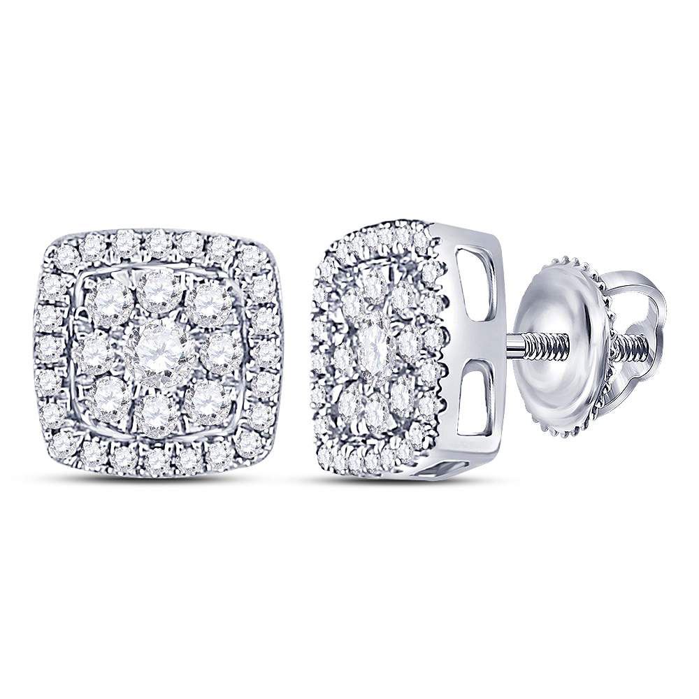 0.51 CTW Diamond Square Cluster Earrings 14kt White Gold - SKU: GD119144