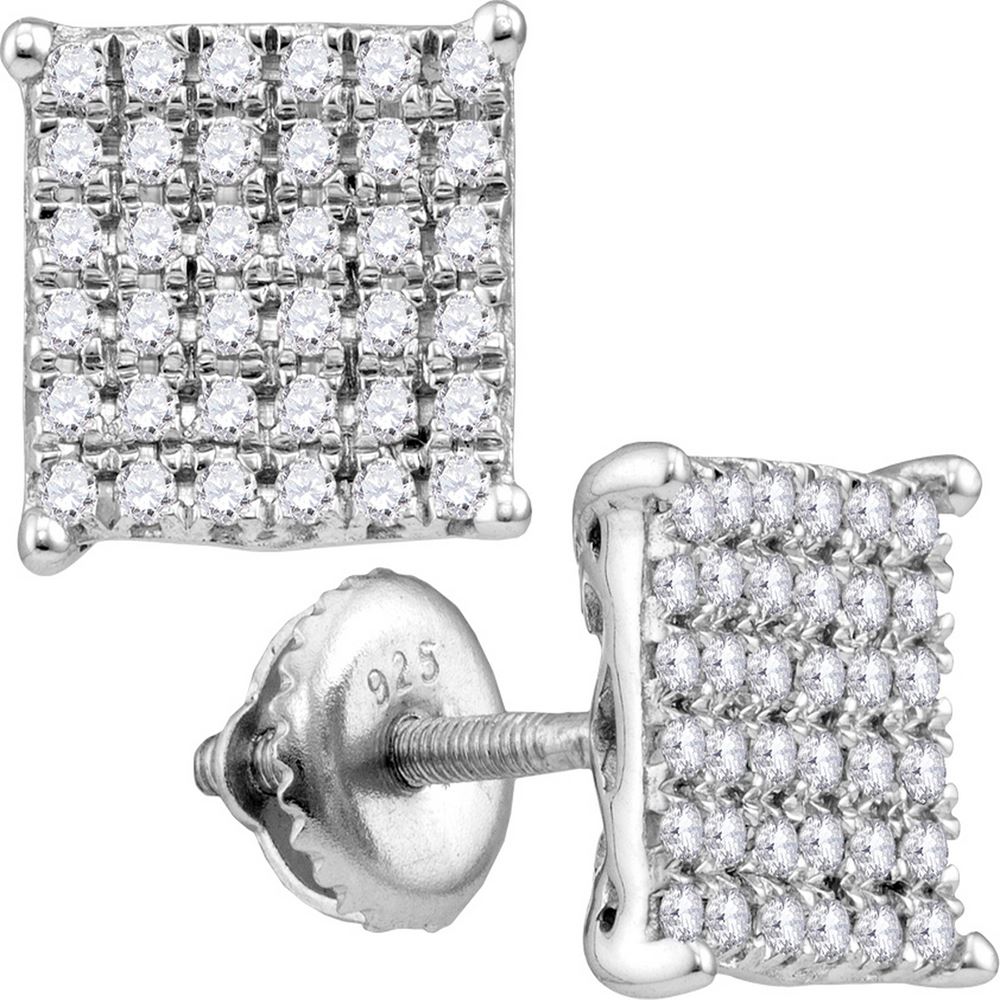 REF-41F2N- SKU: GD113148 ---- 0.51 CTW Diamond Square Cluster Screwback Earrings 10KT White Gold