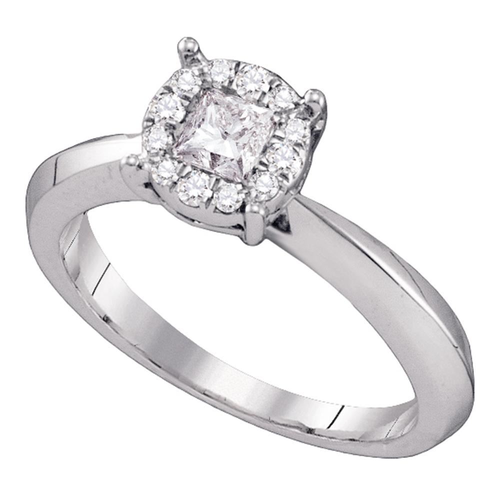 REF-101W9K- SKU: GD63175 ---- 0.51 CTW Princess Diamond Cluster Bridal Engagement Ring 14KT White Gold