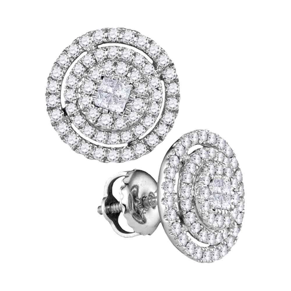REF-59N9F- SKU: GD107393 ---- 0.51 CTW Princess Diamond Soleil Cluster Screwback Earrings 14KT White Gold
