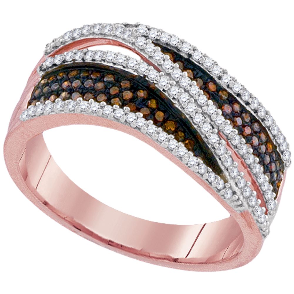 REF-46M4H- SKU: GD93207 ---- 0.51 CTW Red Color Diamond Crossover Ring 10KT Rose Gold