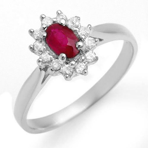 0.51 CTW Ruby & Diamond Ring 18K White Gold ---- Luxury Designer Brand Ring Appraised Retail Price at $1,800 ---- SKU Number US12620 18k White gold Ring Size is 6, Ring measuring approx. 3/8" x 1/4" , weighing in total approx. 2.8 grams. Made in the USA and is stamped 18k, Main stone 0.38 carat total weight containing 1 pieces of Mid-Opaque-Deep Red color with AAA quality Oval shape cut Ruby , Stone #2 0.13 carat total weight containing 12 pieces of H-I color with VS/SI quality Round shape cut