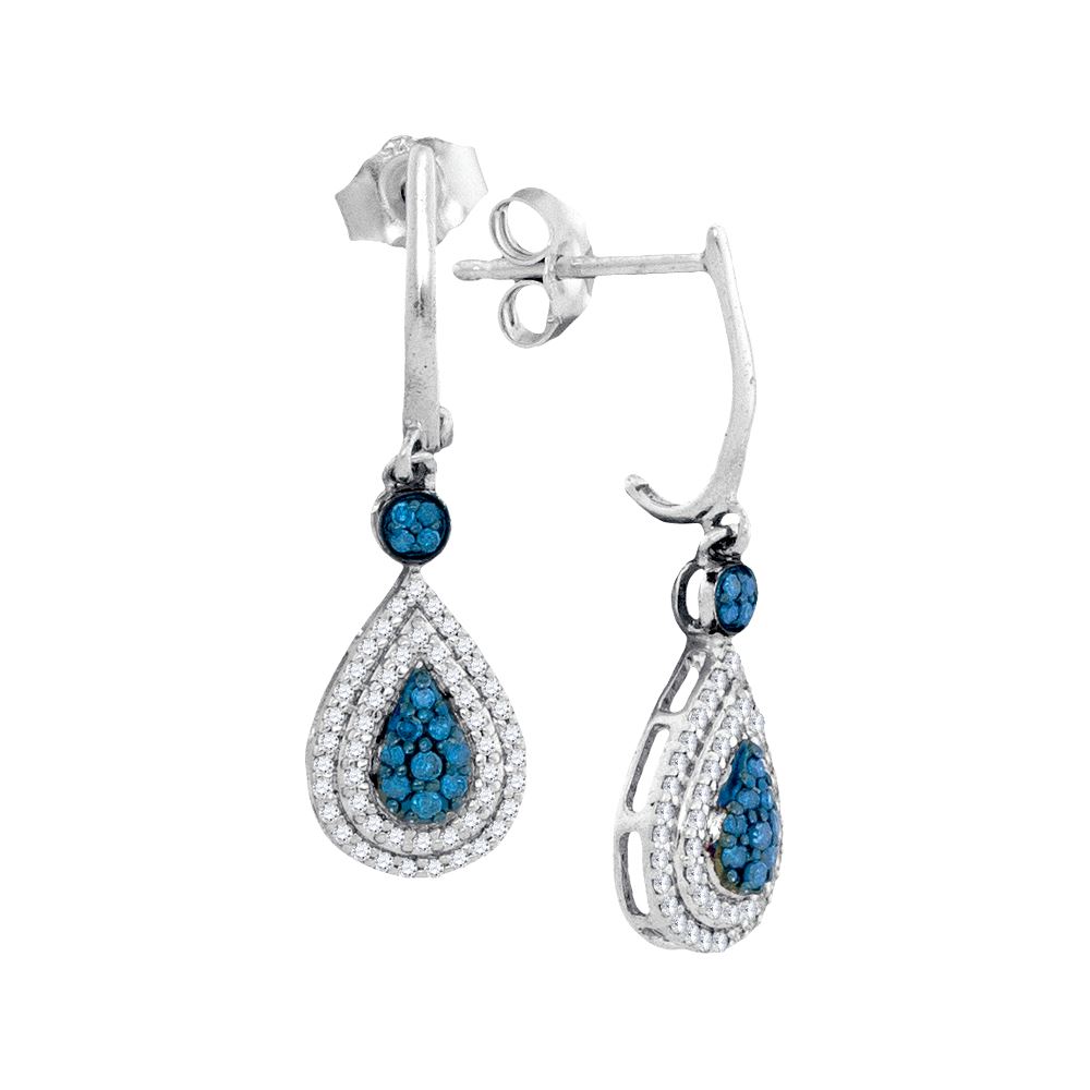 REF-34Y4X- SKU: GD93928 ---- 0.52 CTW Blue Color Diamond Teardrop Dangle Earrings 10KT White Gold