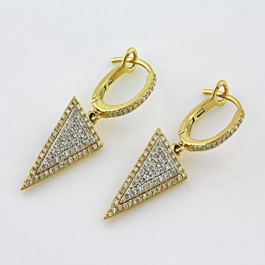 0.52 ct F, SI2-I1 Pavé Diamonds Triangle Geometric Dangle Drop Earrings 14Kt Yellow Gold 3.41 gms